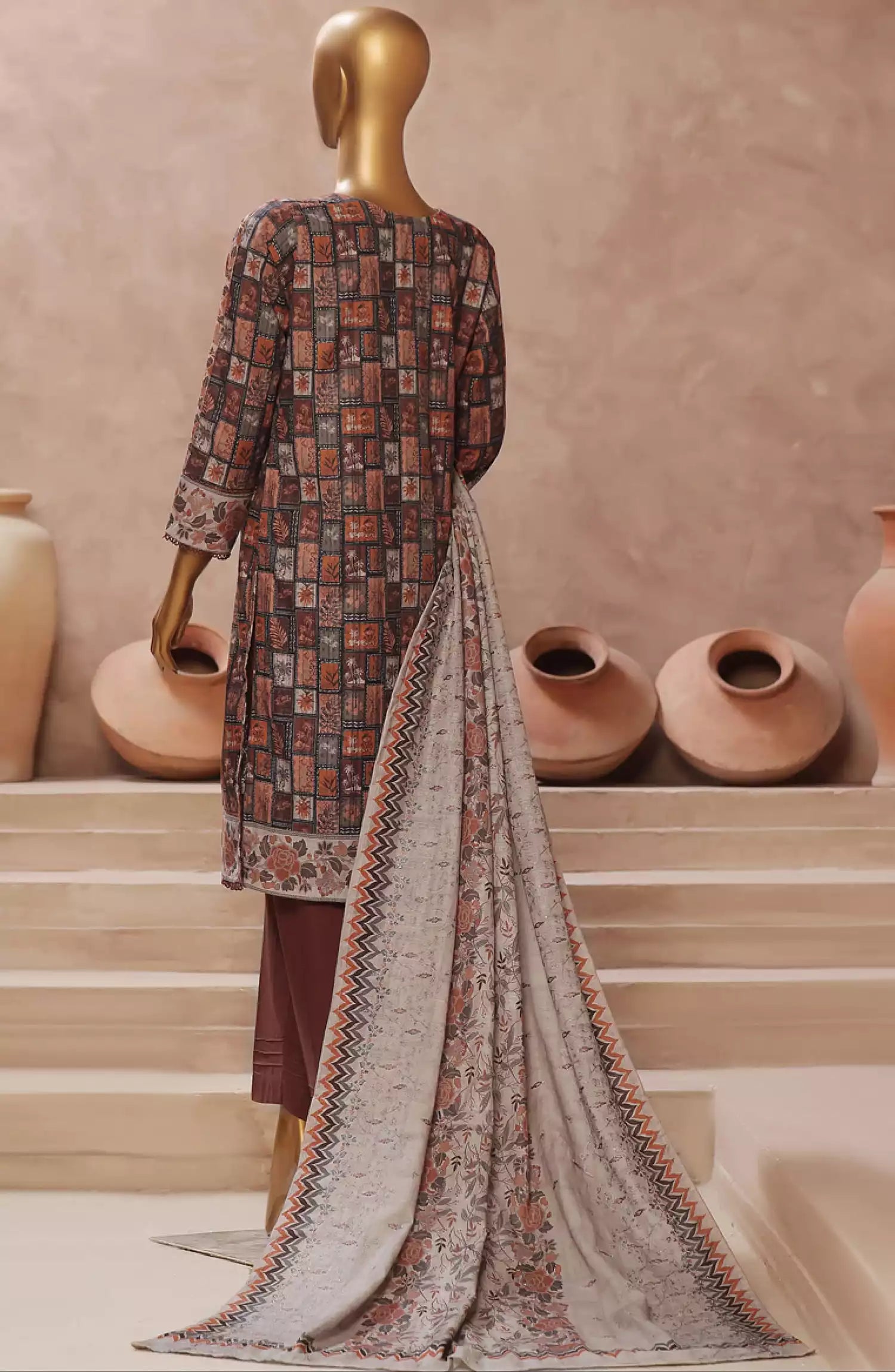 HZ Khaddar Embroidered 3 PCS RTW Vol 02 - KE-912 RUST BROWN