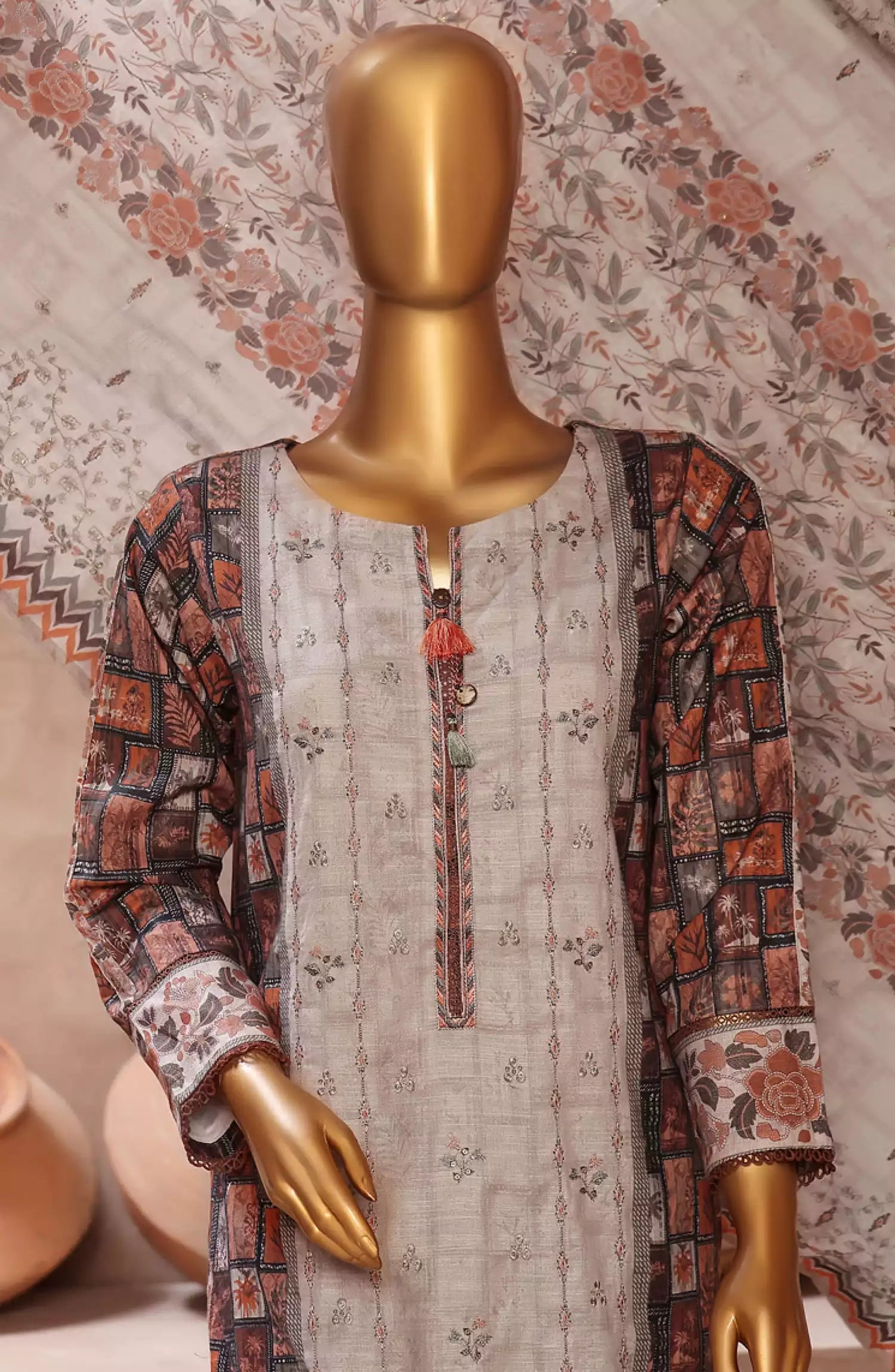 Home HZ Khaddar Embroidered 3 PCS RTW Vol 02 - KE-912 RUST BROWN
