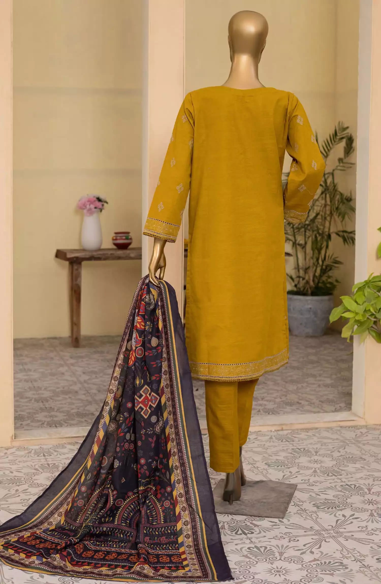 Rua by Casual Lite Embroidered Premium Linen Stitched 3 Piece Suit - D-01 Olive Mustard Hue - CL25RU - Dhani - Winter Collection