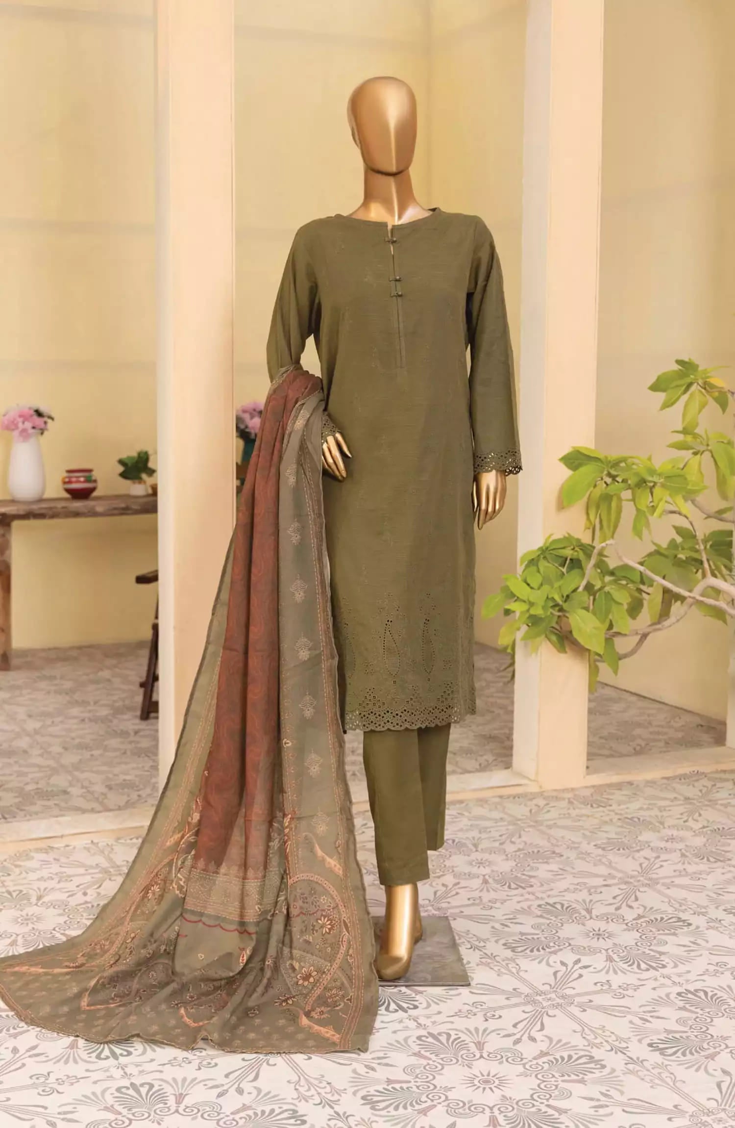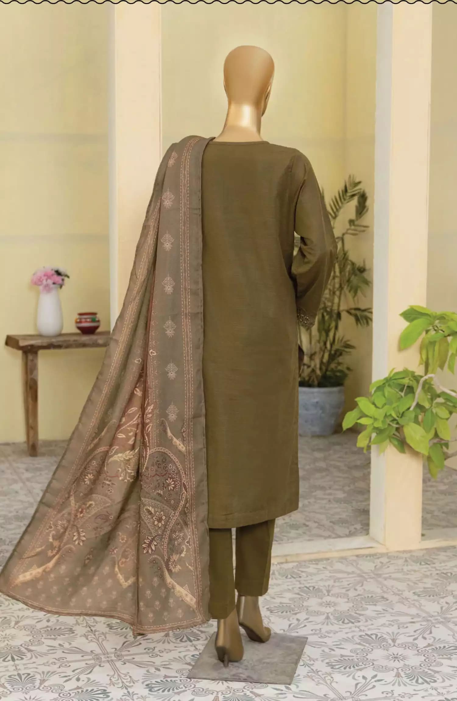 HZ Khaddar Embroidered Chikankari with Pashmina Shawl Collection has been styled in the image for photography and illustrative purposes.