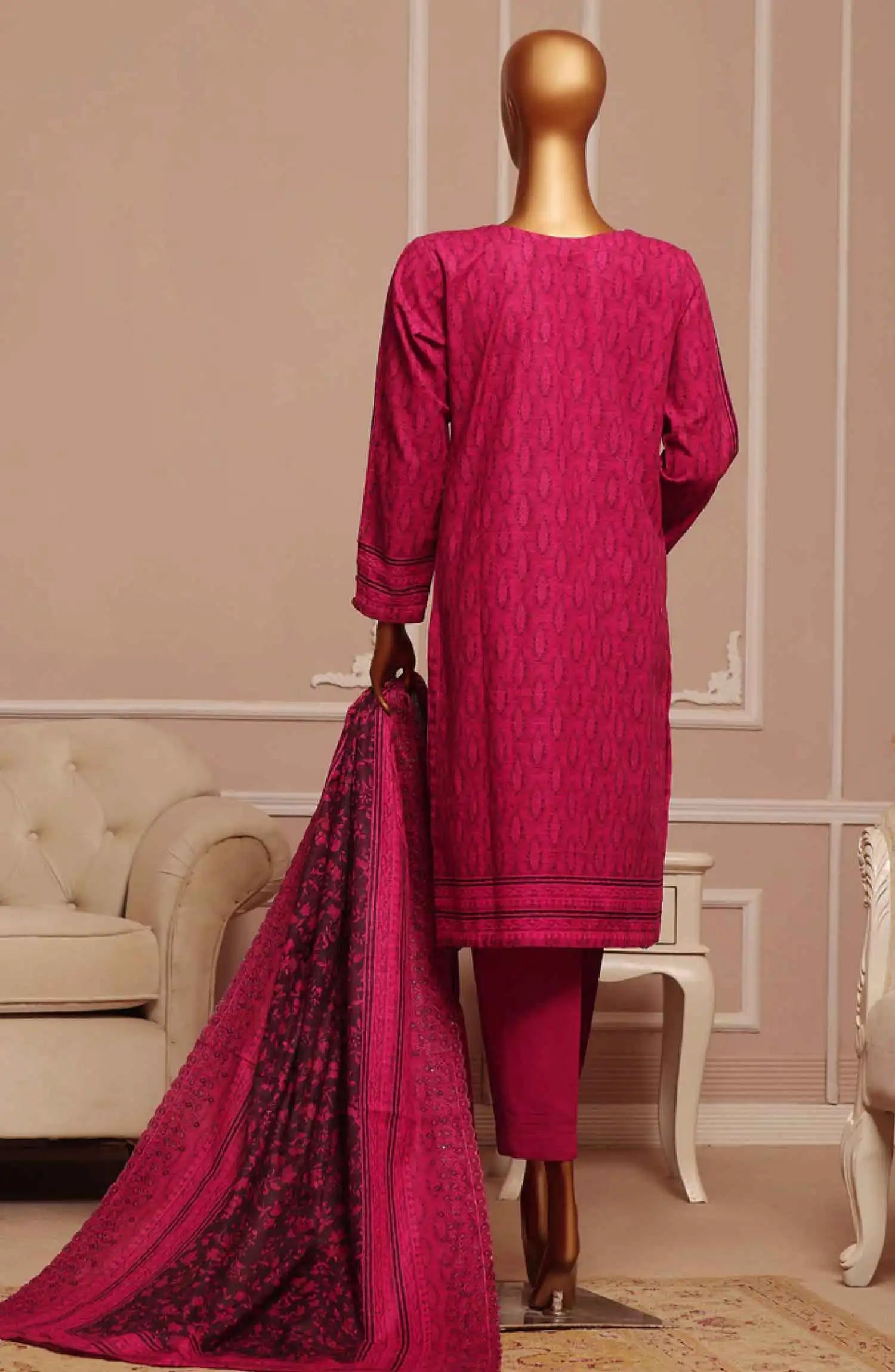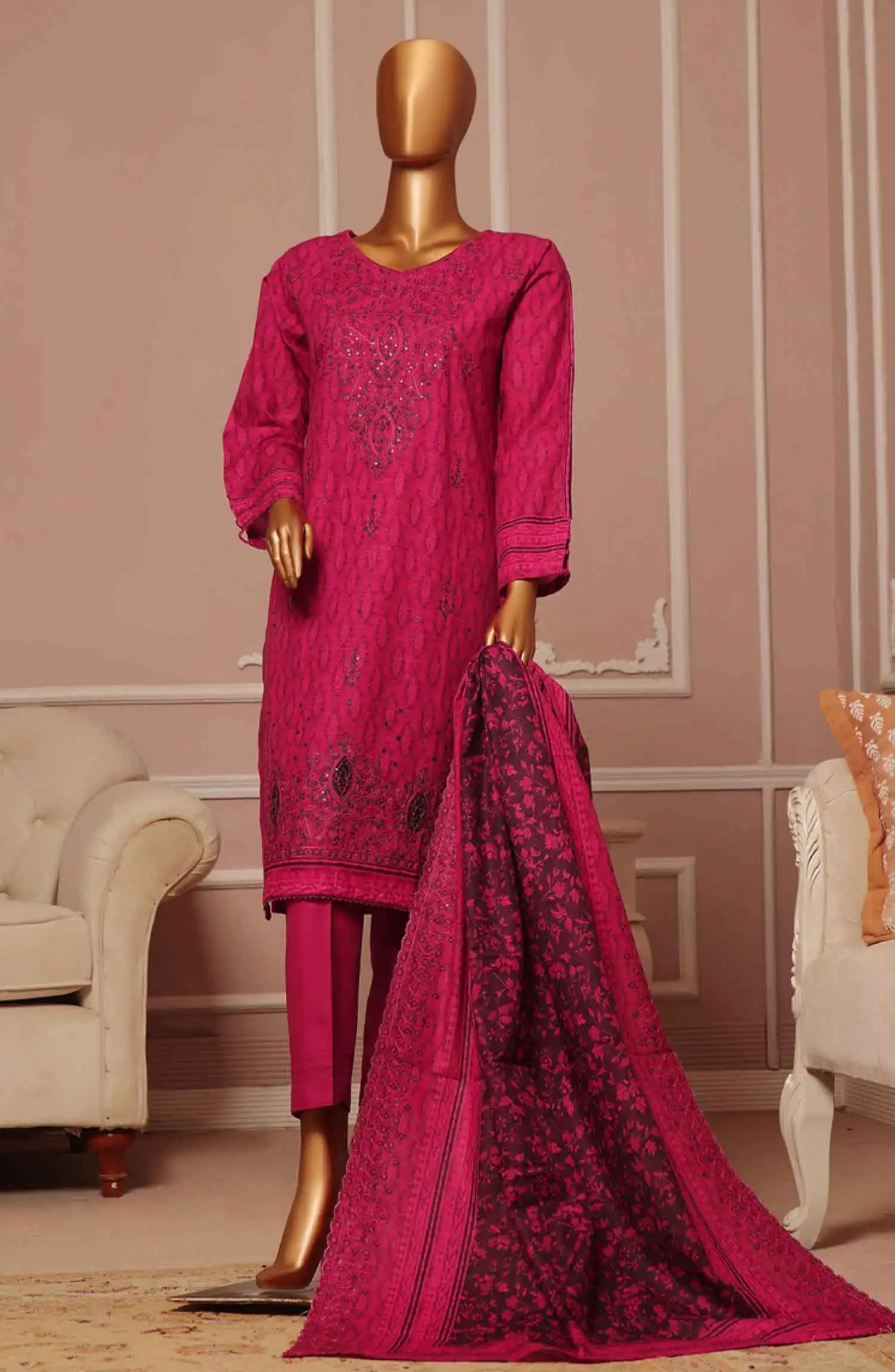 Home HZ Khaddar Embroidered RTW 3Pc with CutWork Dupatta - Vol 1 - KE 906 MAGENTA