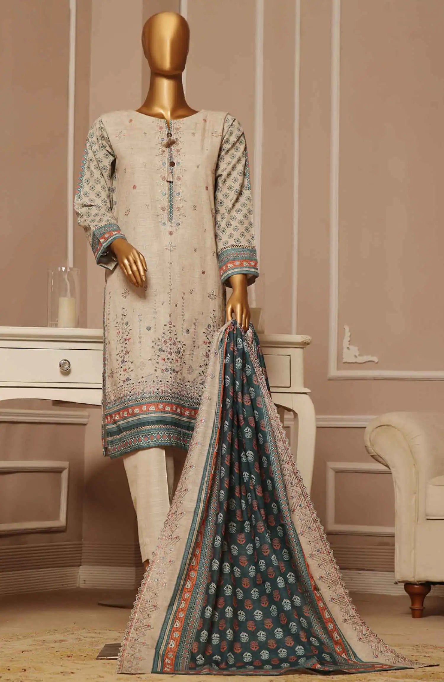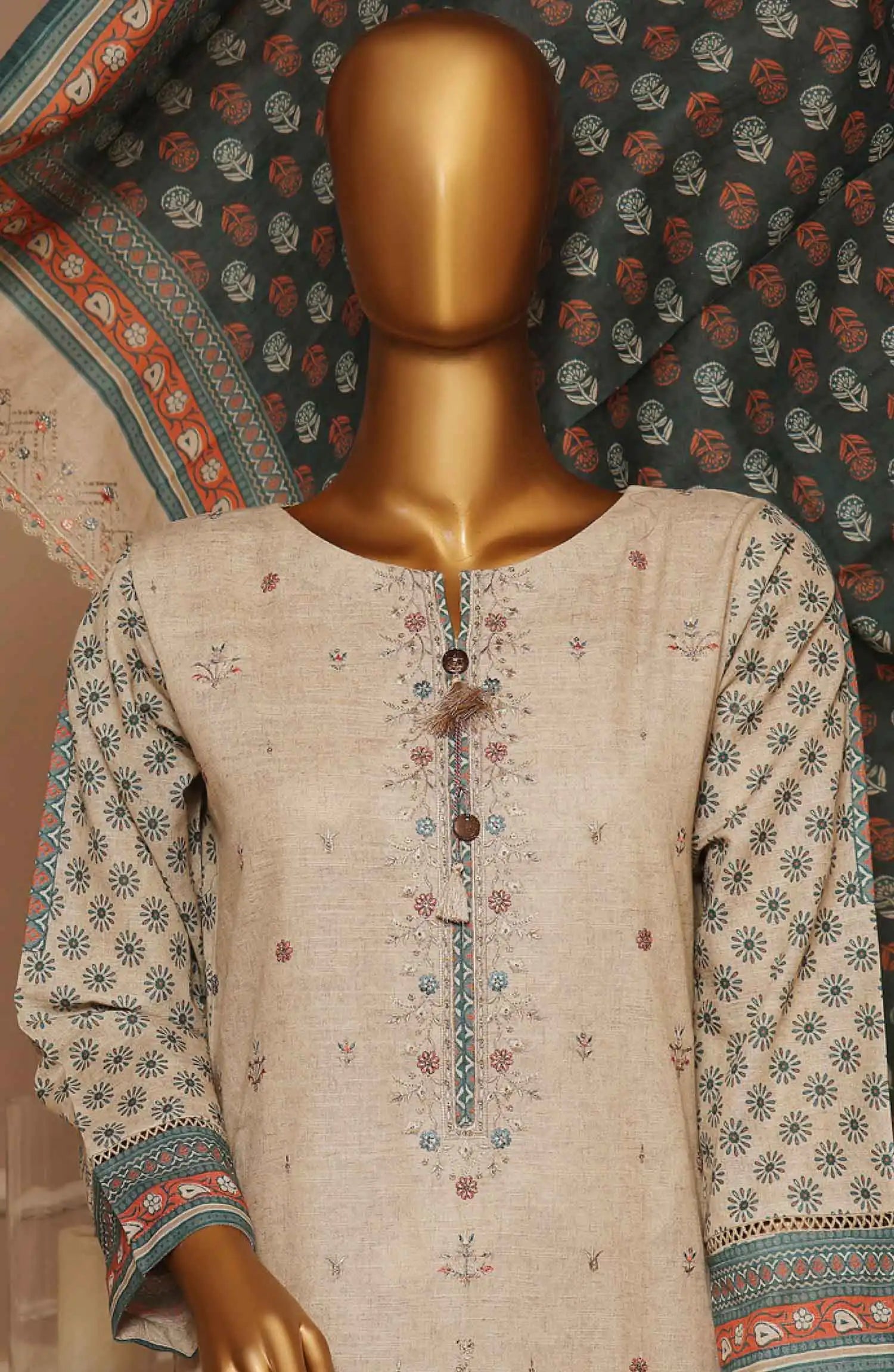 HZ Khaddar Embroidered RTW 3Pc with CutWork Dupatta - Vol 1 has been styled in the image for photography and illustrative purposes.