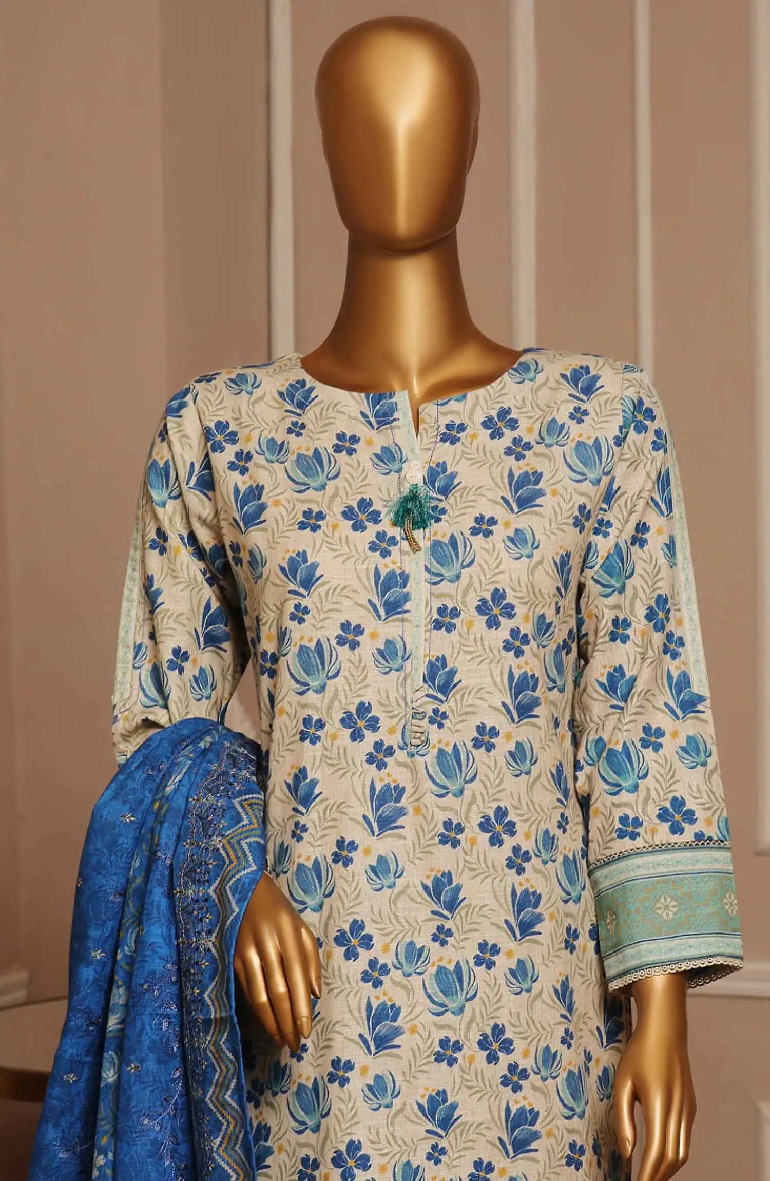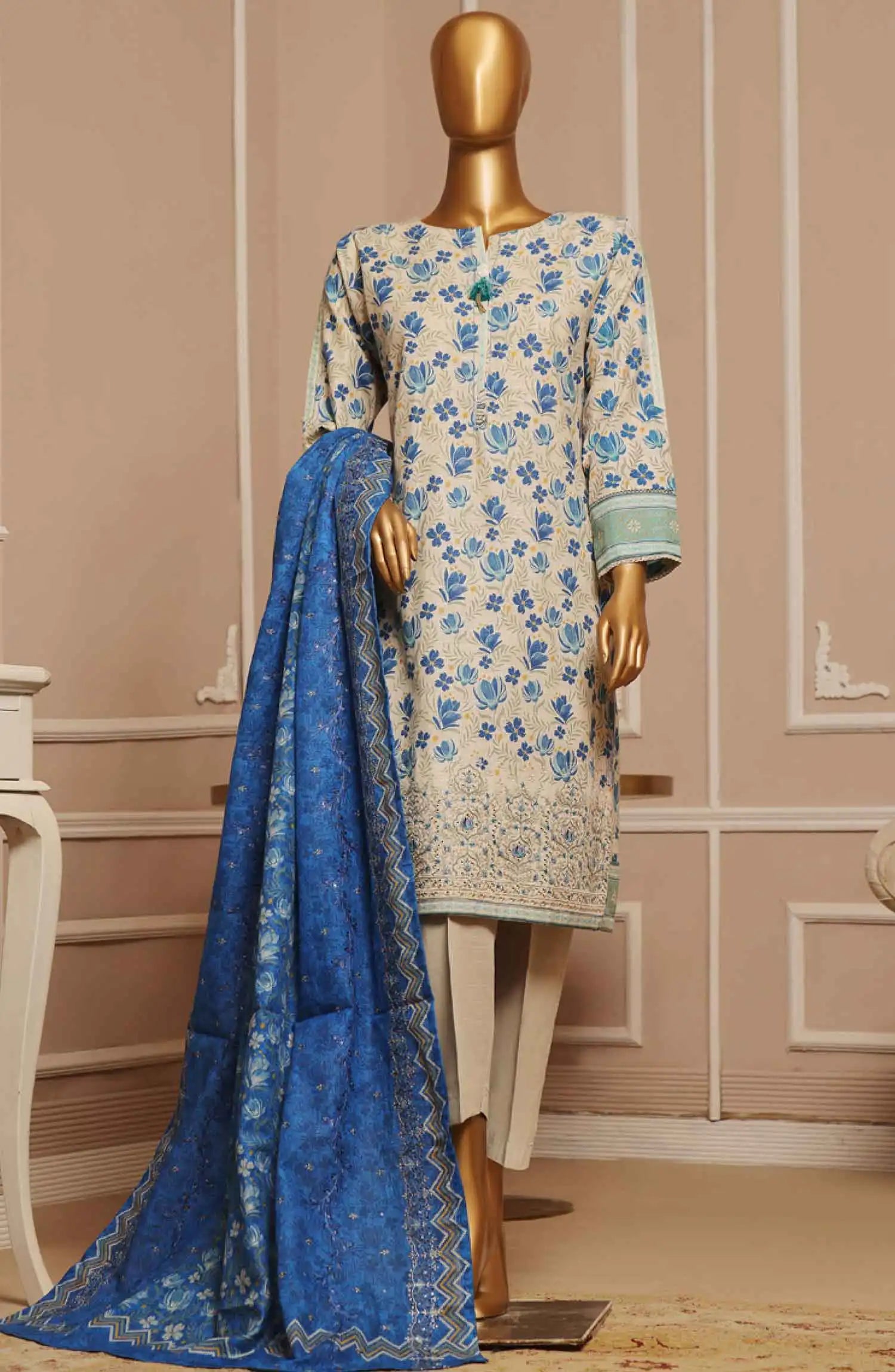 Home HZ Khaddar Embroidered RTW 3Pc with CutWork Dupatta - Vol 1 - KE 911 BEIGE BLUE