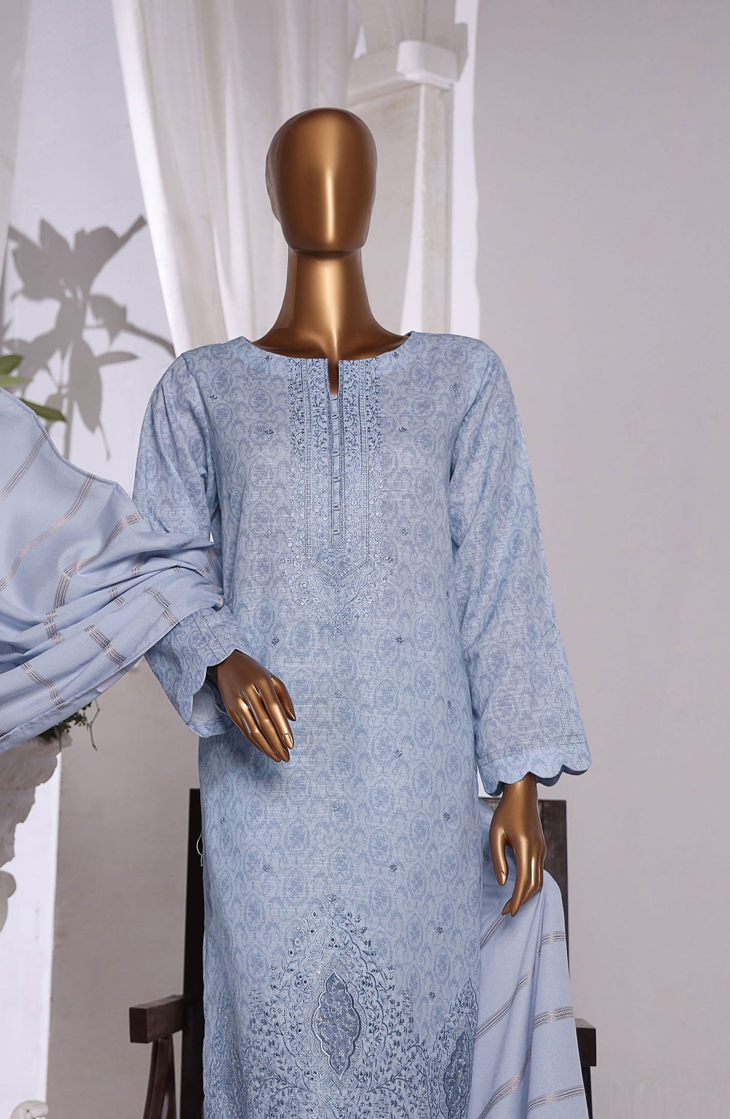 Ayla Embroidered Chambray Stitched 2 Piece Solids - EAE210105E - AY25SW - Sky Blue - Winter Collection
