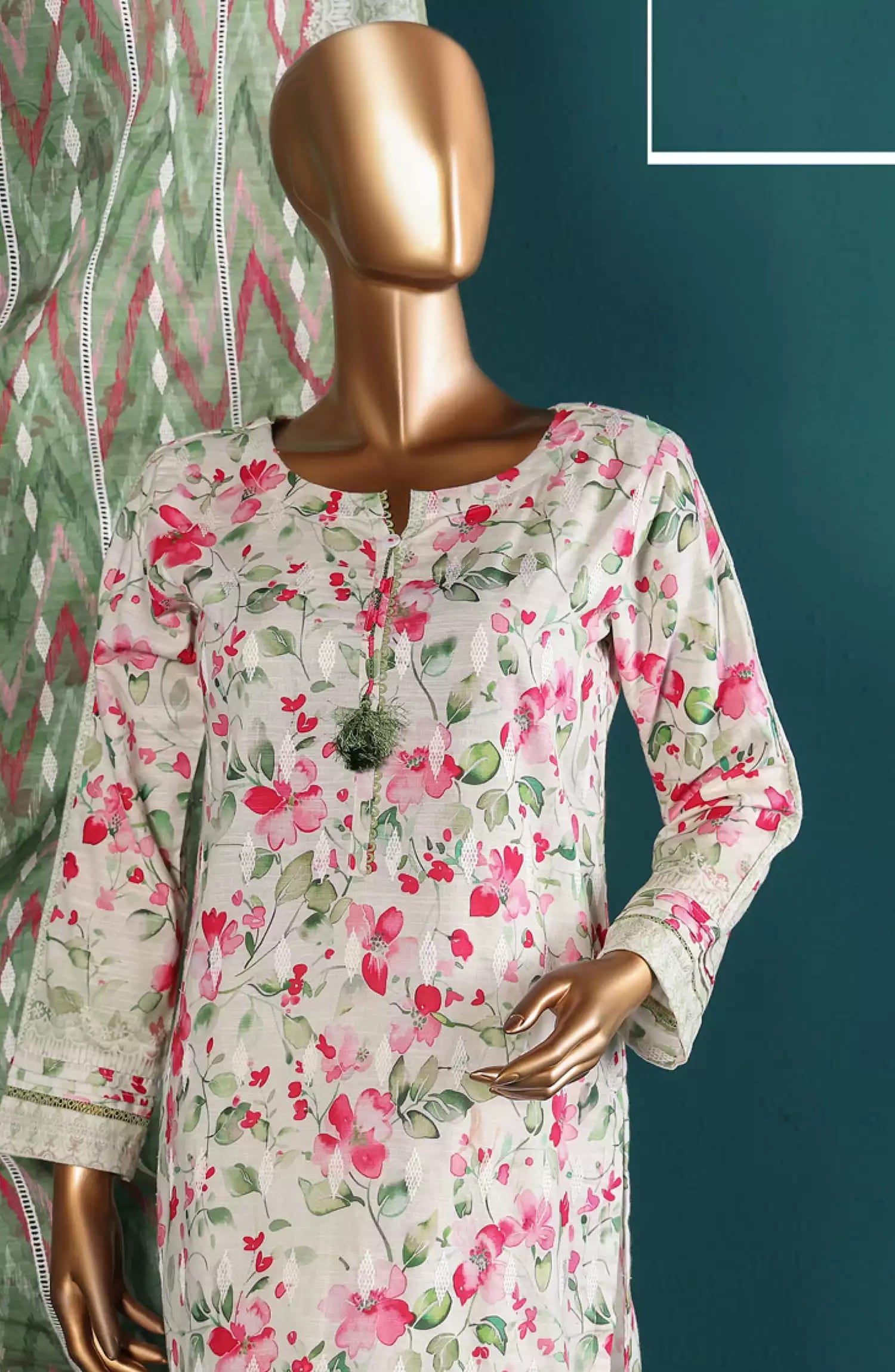 HZ Khaddar RTW Printed Embroidered Chikankari Collection - KE-916-PASTEL GREEN
