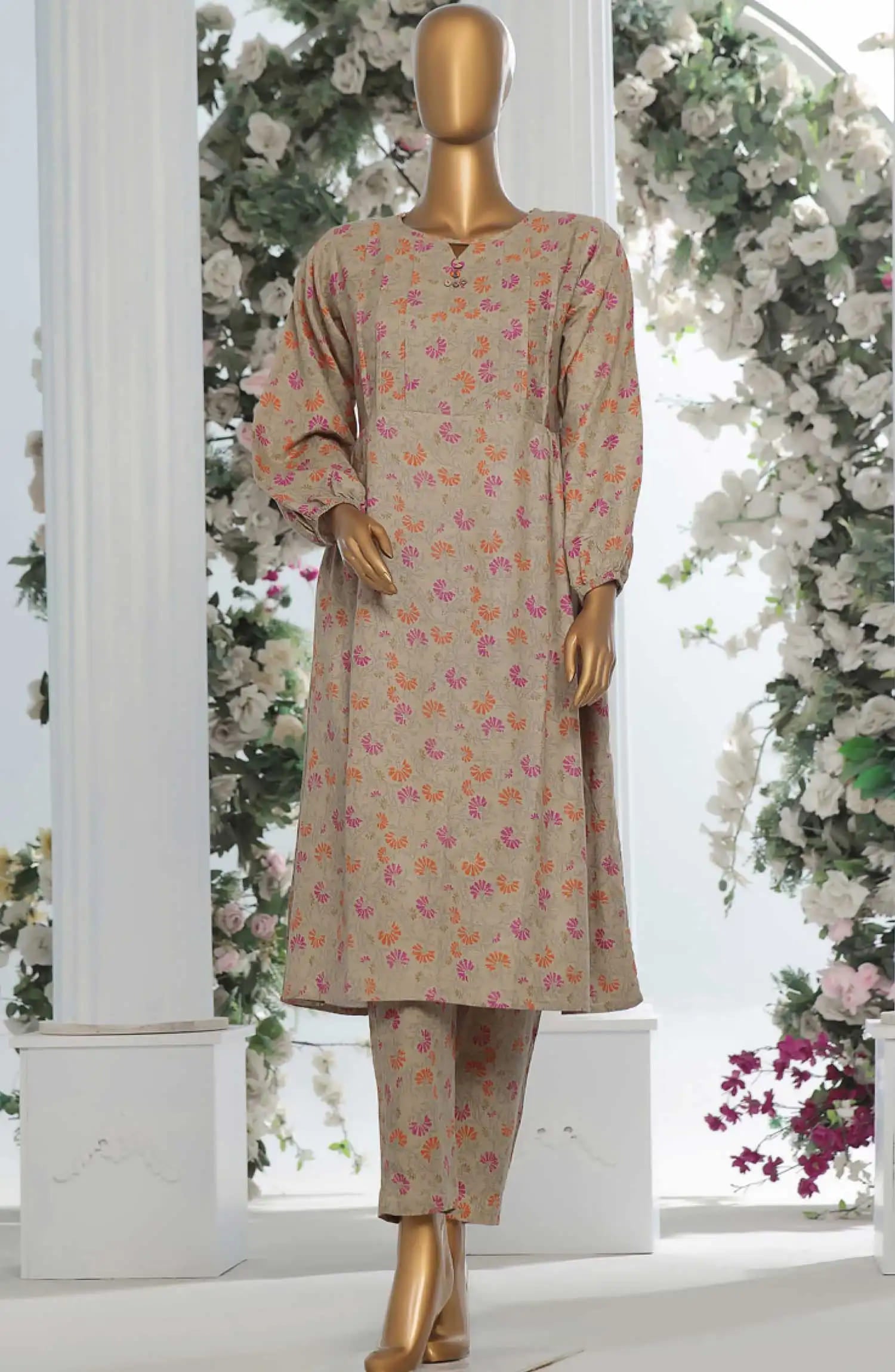 HZ Light Khaddar Frocks 2Pc Co Ords Vol 02-KPC 914 DARK BEIGE