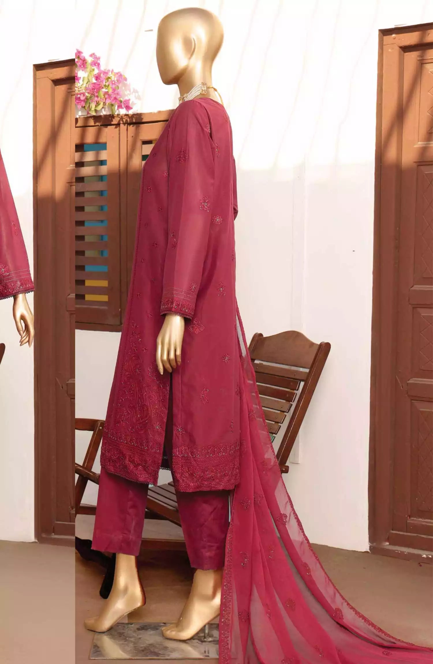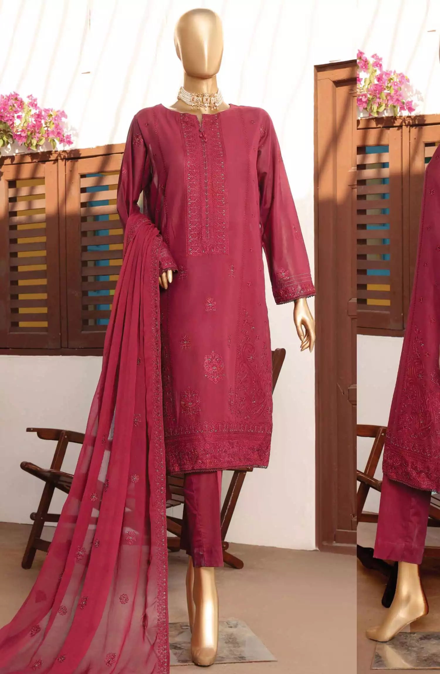 HZ Lucknowi Chikankari Embroidered Collection has been styled in the image for photography and illustrative purposes.