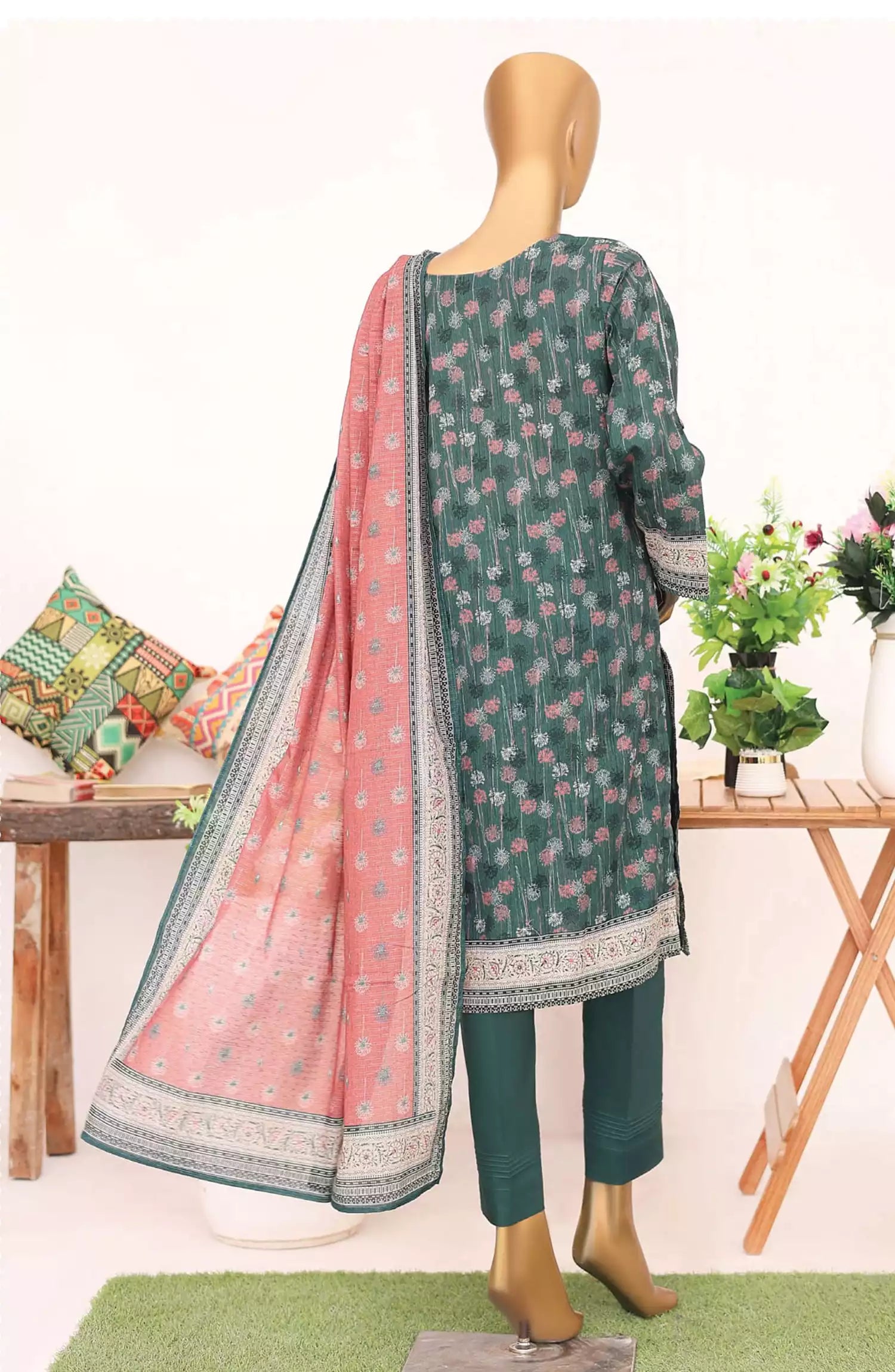 HZ Textile Digital Printed Linen Slub Unstitched 3 Piece Suit - LSD-306 - HZ25LNSL - Green - Winter Collection