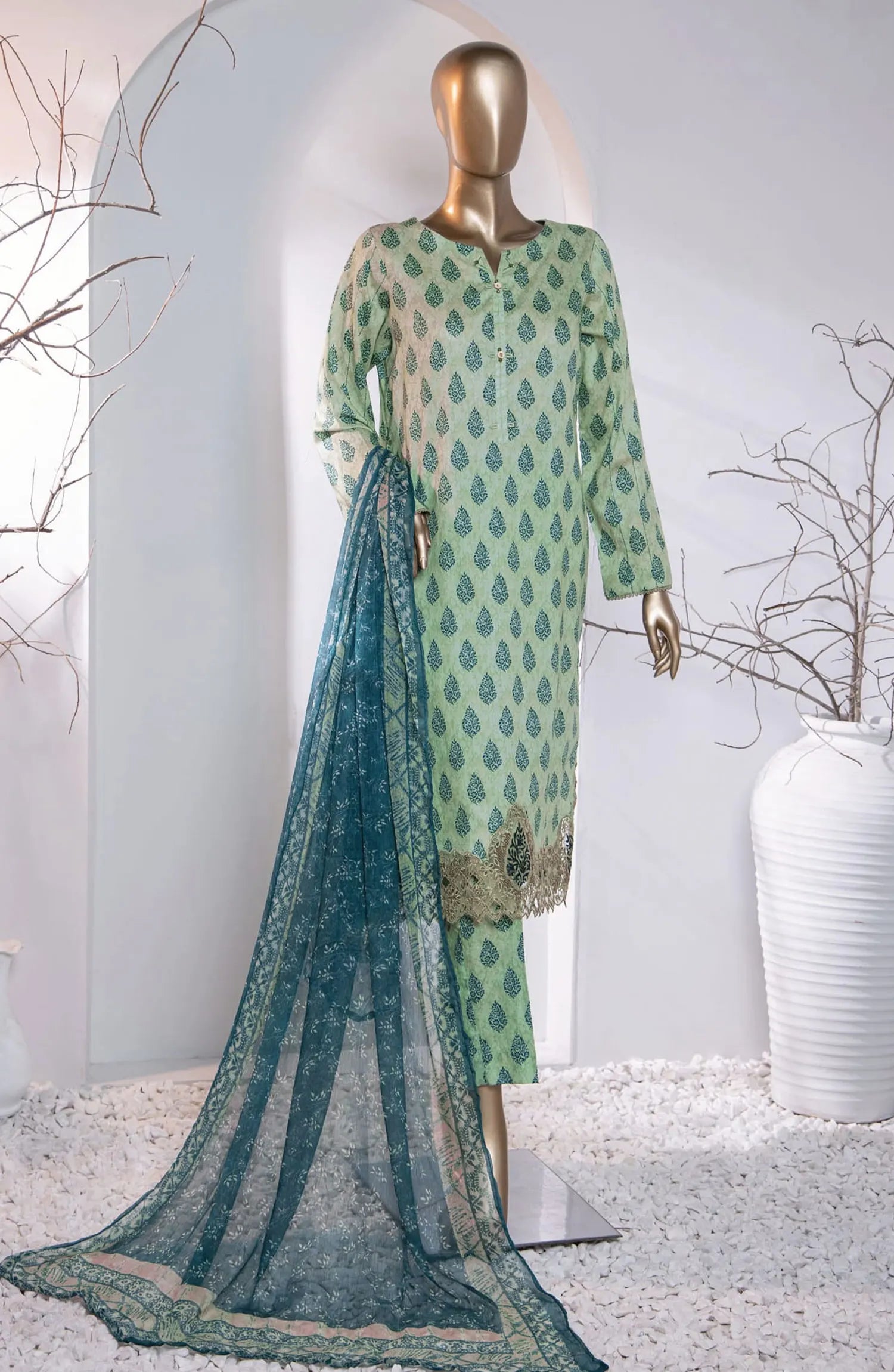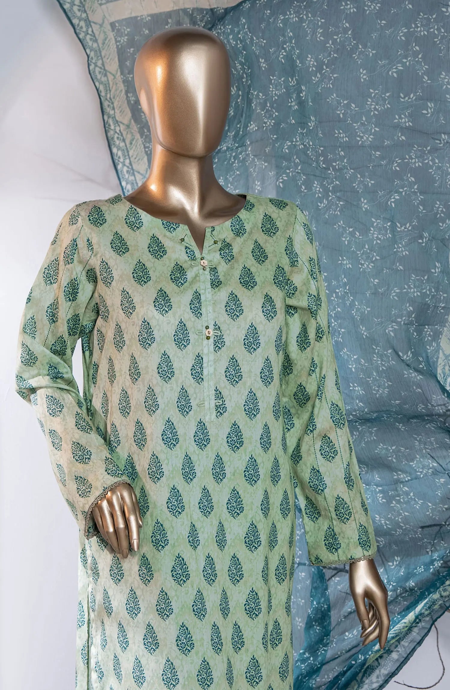 HZ Textile Digital Printed Linen Slub Unstitched 3 Piece Suit - LSD-306 - HZ25LNSL - Green - Winter Collection