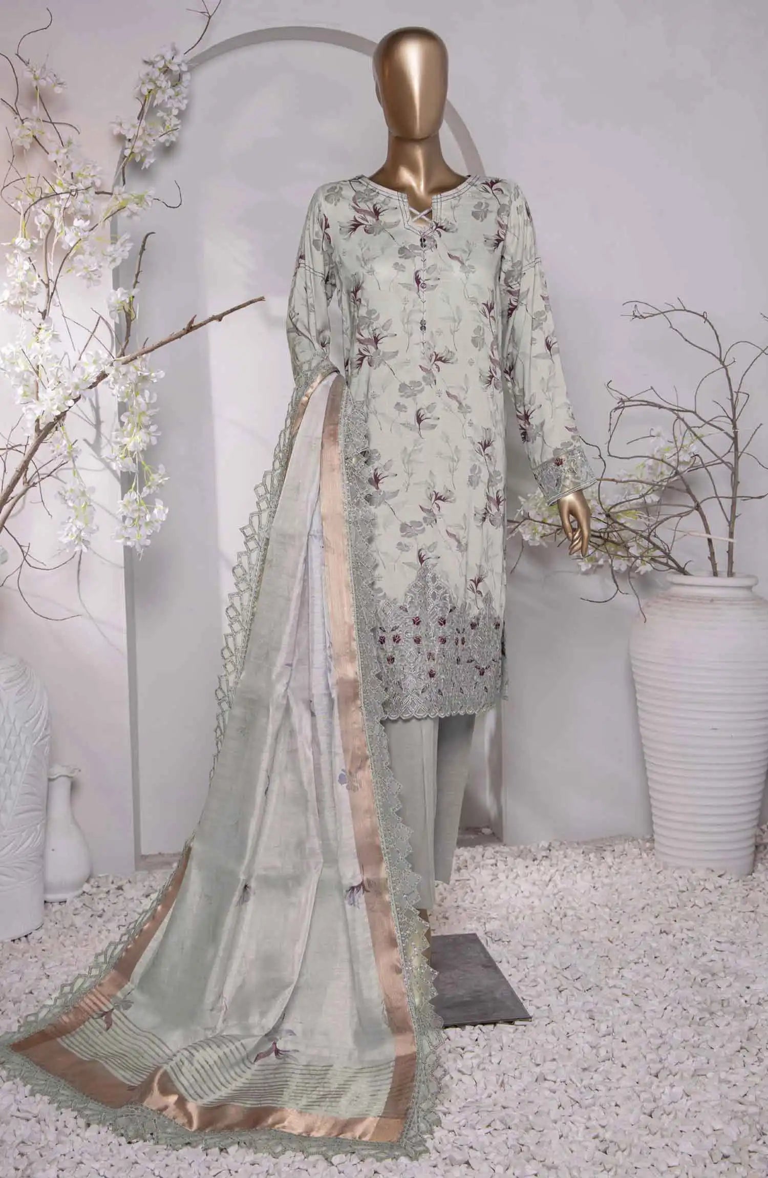 HZ Muse Luxury Raw Silk Embroidered Collection has been styled in the image for photography and illustrative purposes.