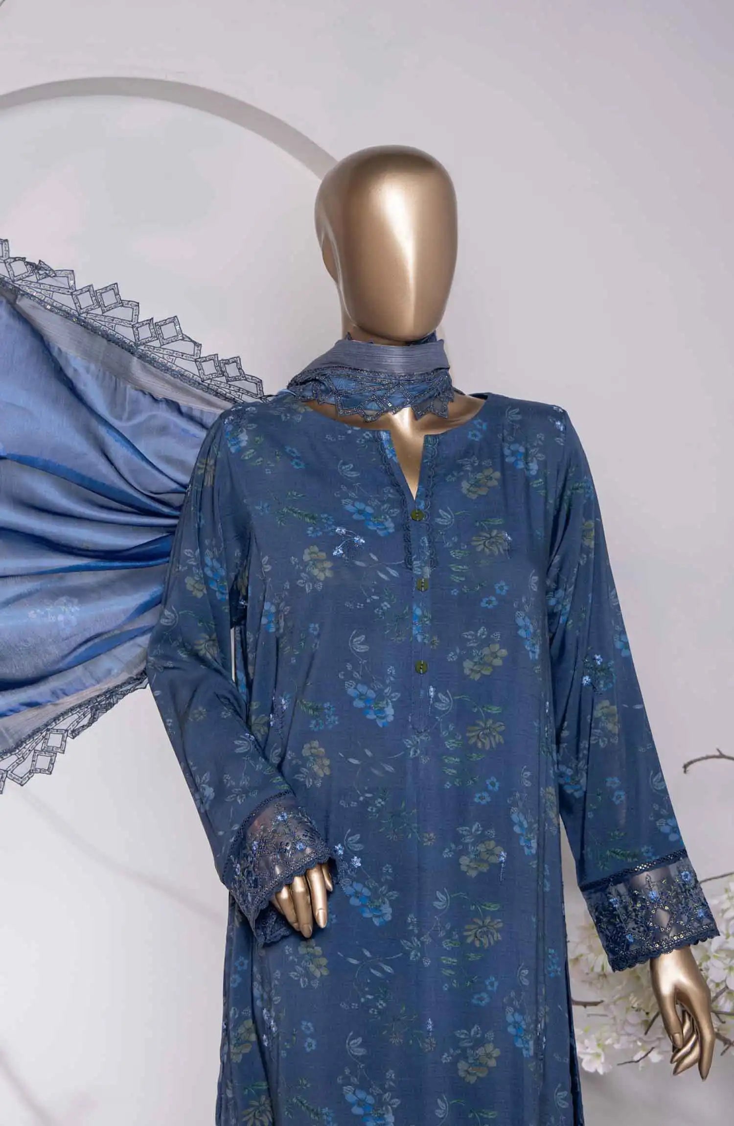Sadabahar Printed Khaddar Stitched 3 Piece Suit - Design-10 - SBD25KHD - Blue - Winter Collection