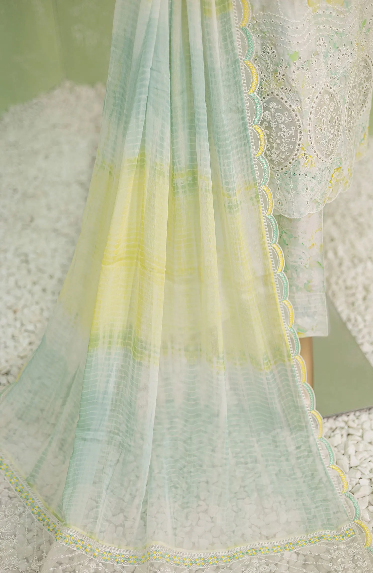 Finished Chiffon Tie n Dye Print with Embroidered border dupatta