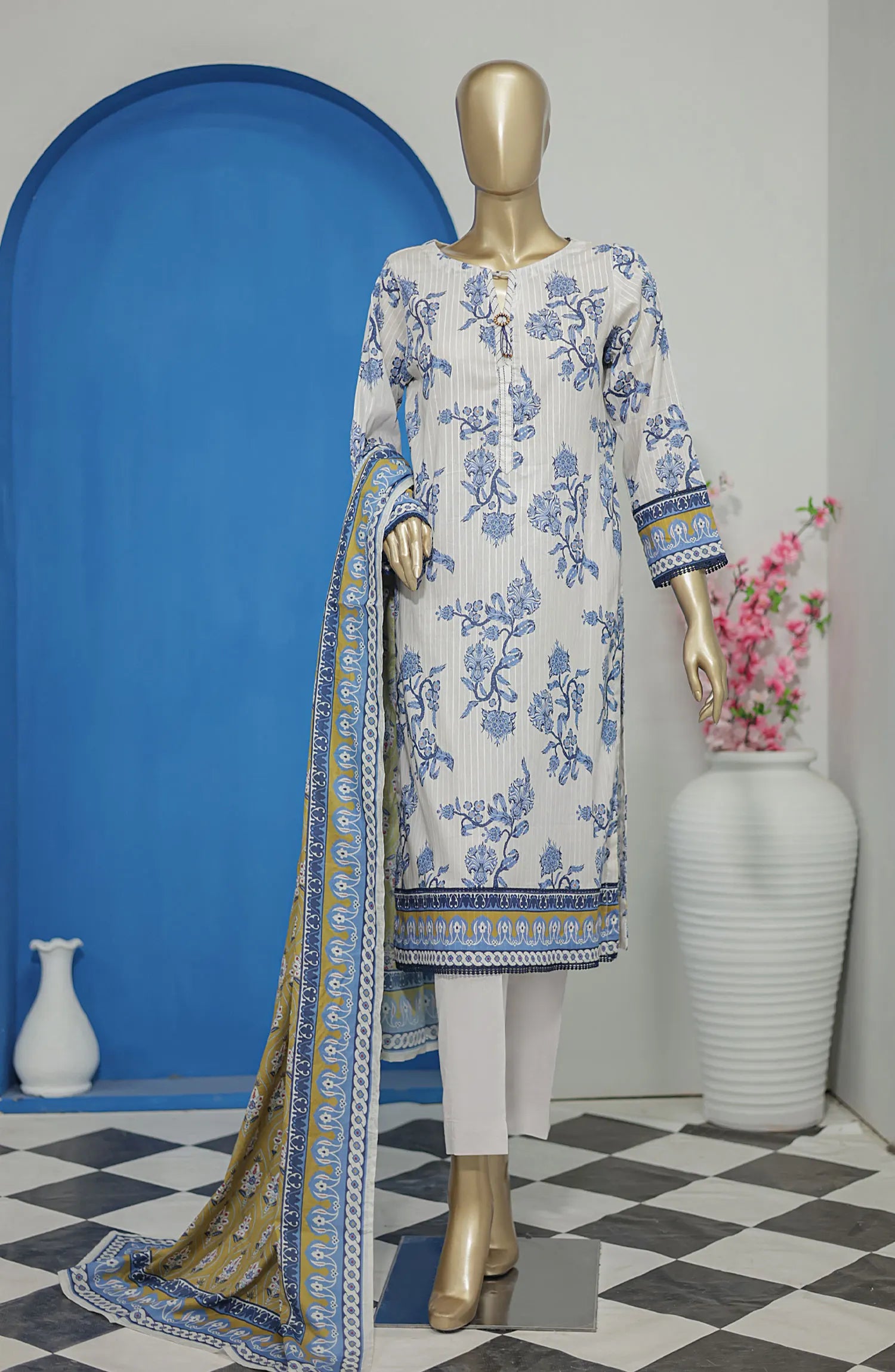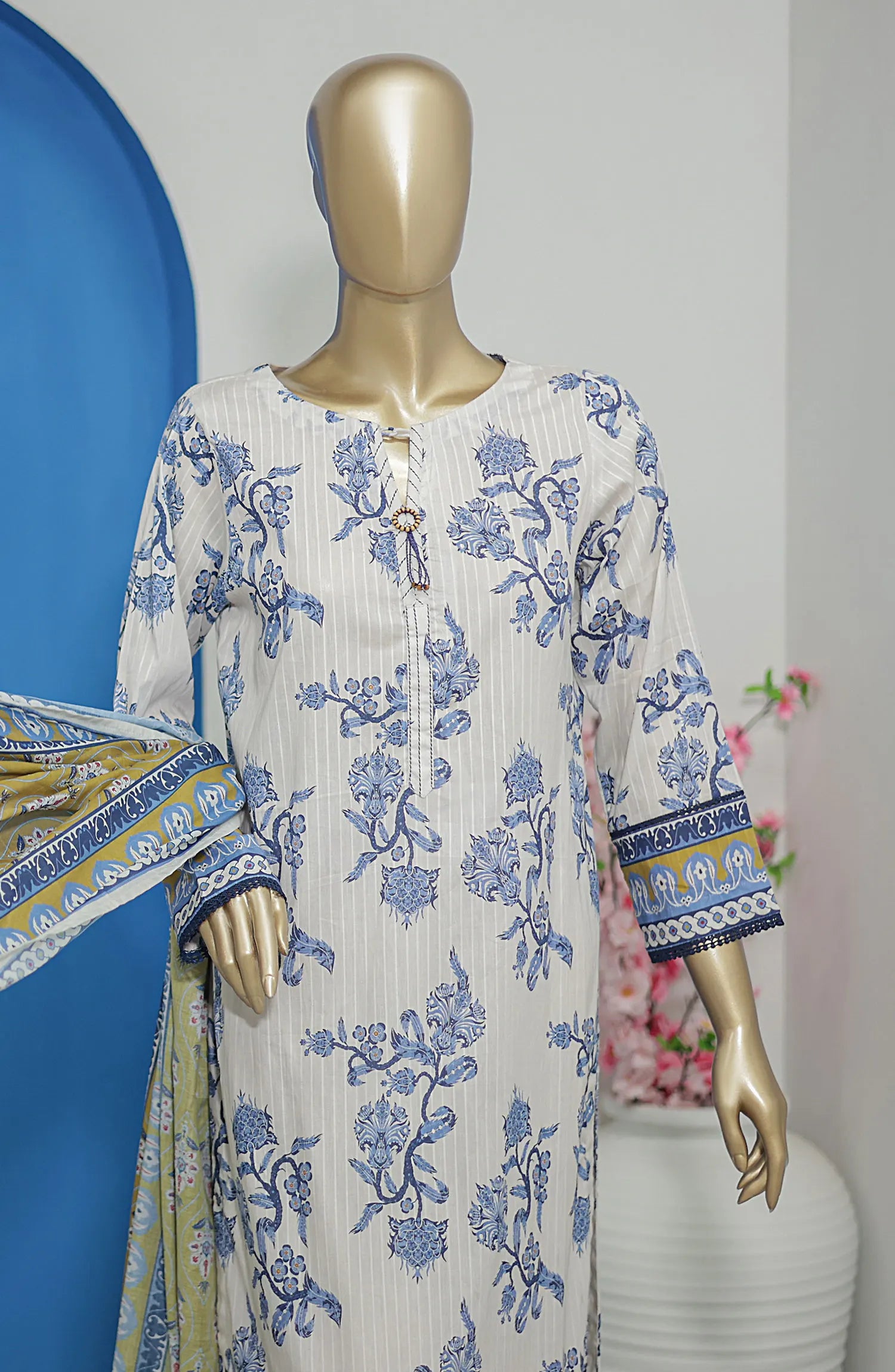 HZ Textile Digital Printed Linen Slub Unstitched 3 Piece Suit - LSD-304 - HZ25LNSL - White - Winter Collection