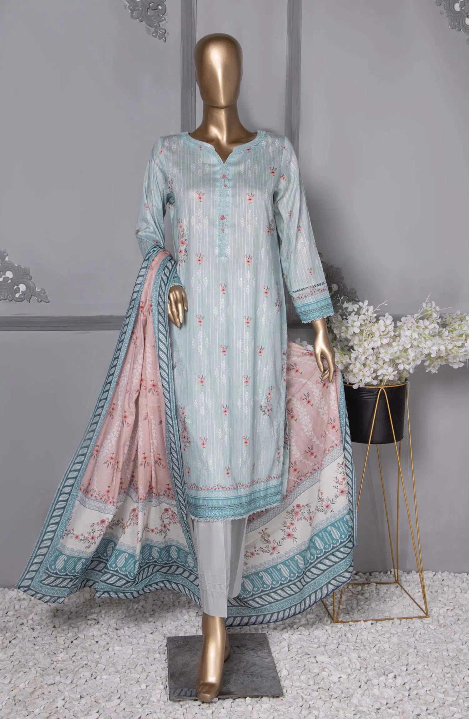 HZ Textile Digital Printed Linen Slub Unstitched 3 Piece Suit - LSD-308 - HZ25LNSL - Blue - Winter Collection