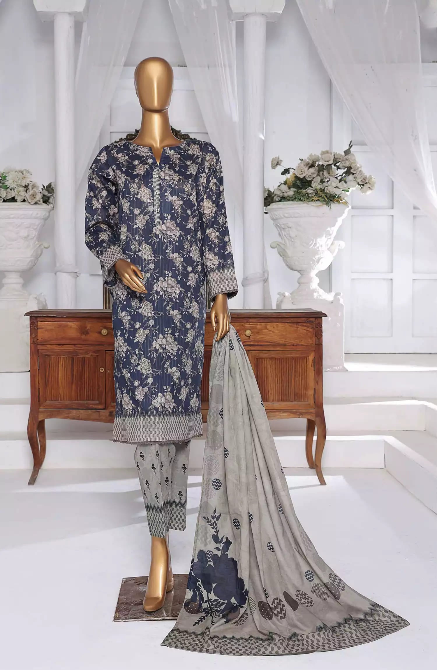 Ayla Embroidered Chambray Stitched 2 Piece Solids - EAE210105H - AY25SW - Silver Grey - Winter Collection