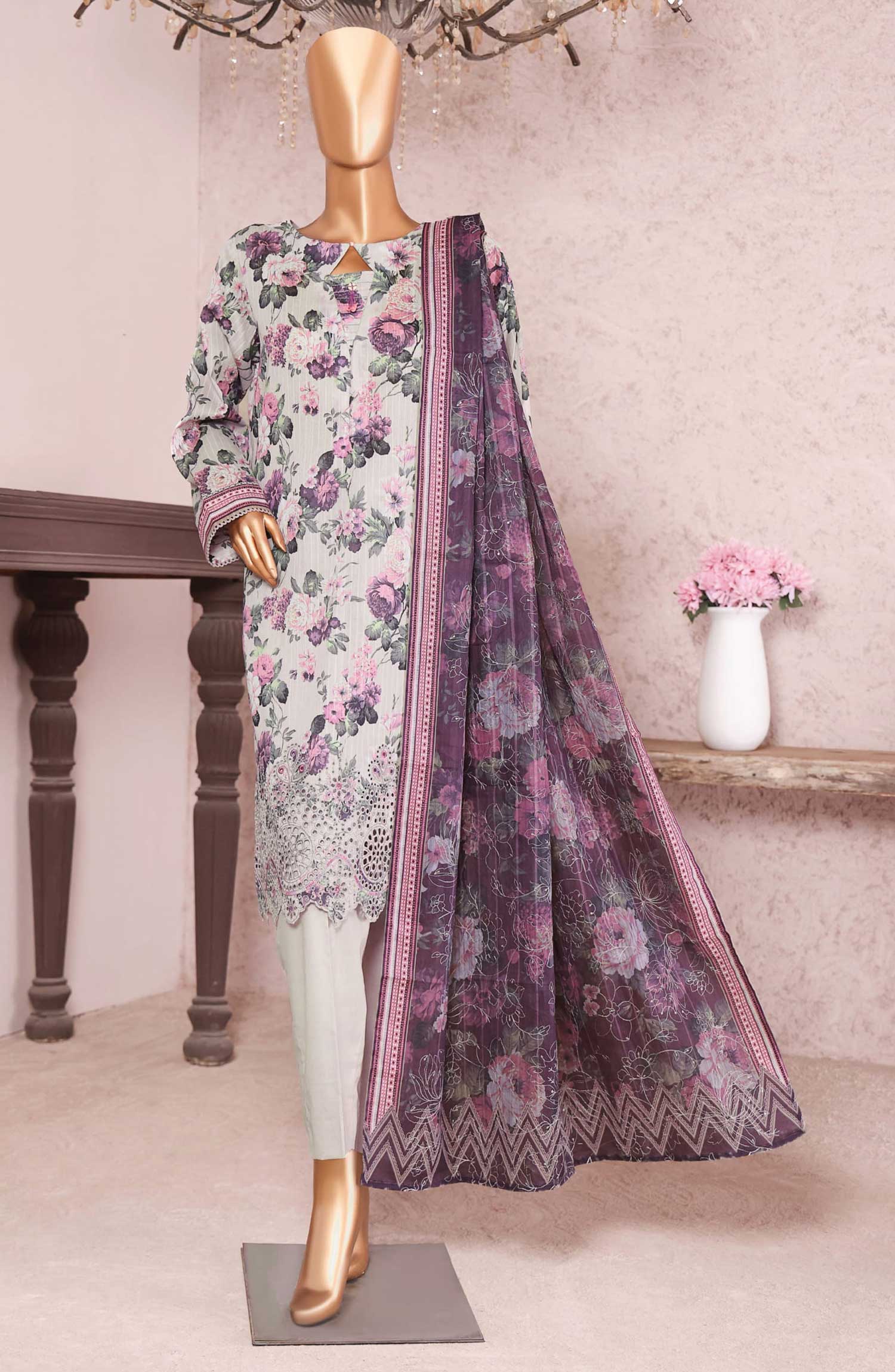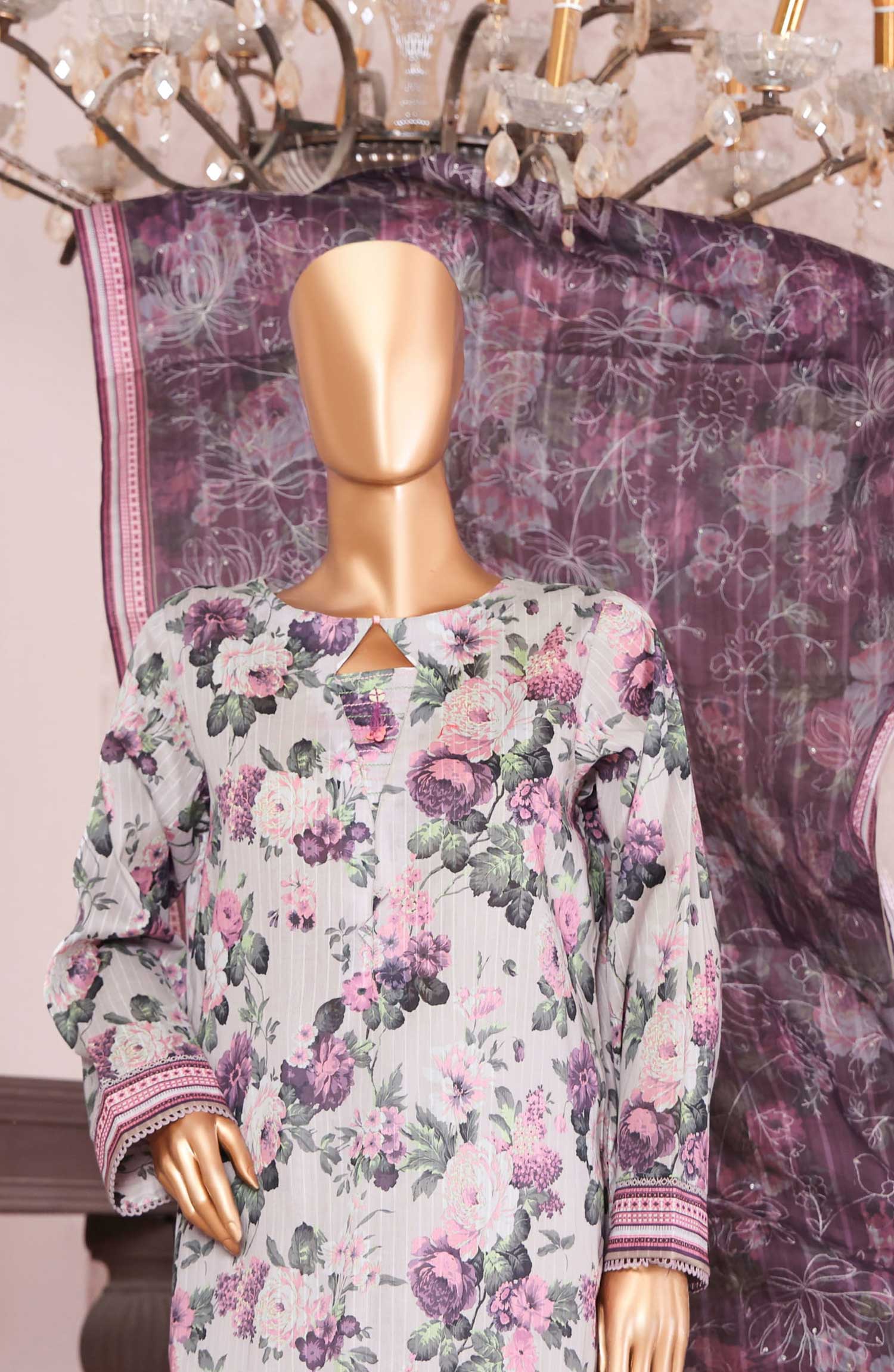 Aylin Luxury Embroidered Lawn Unstitched 3 Piece Suit - D-04 Pink Lilly - AYL26LX - Pink - Festive Collection