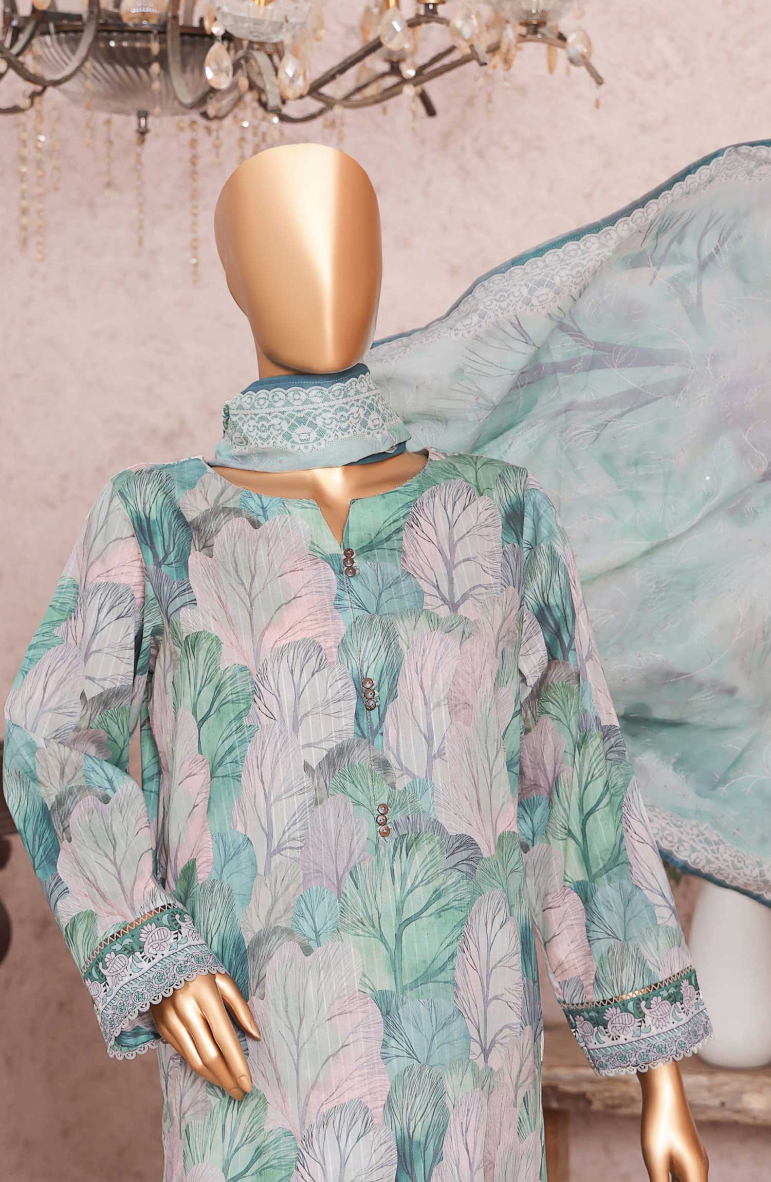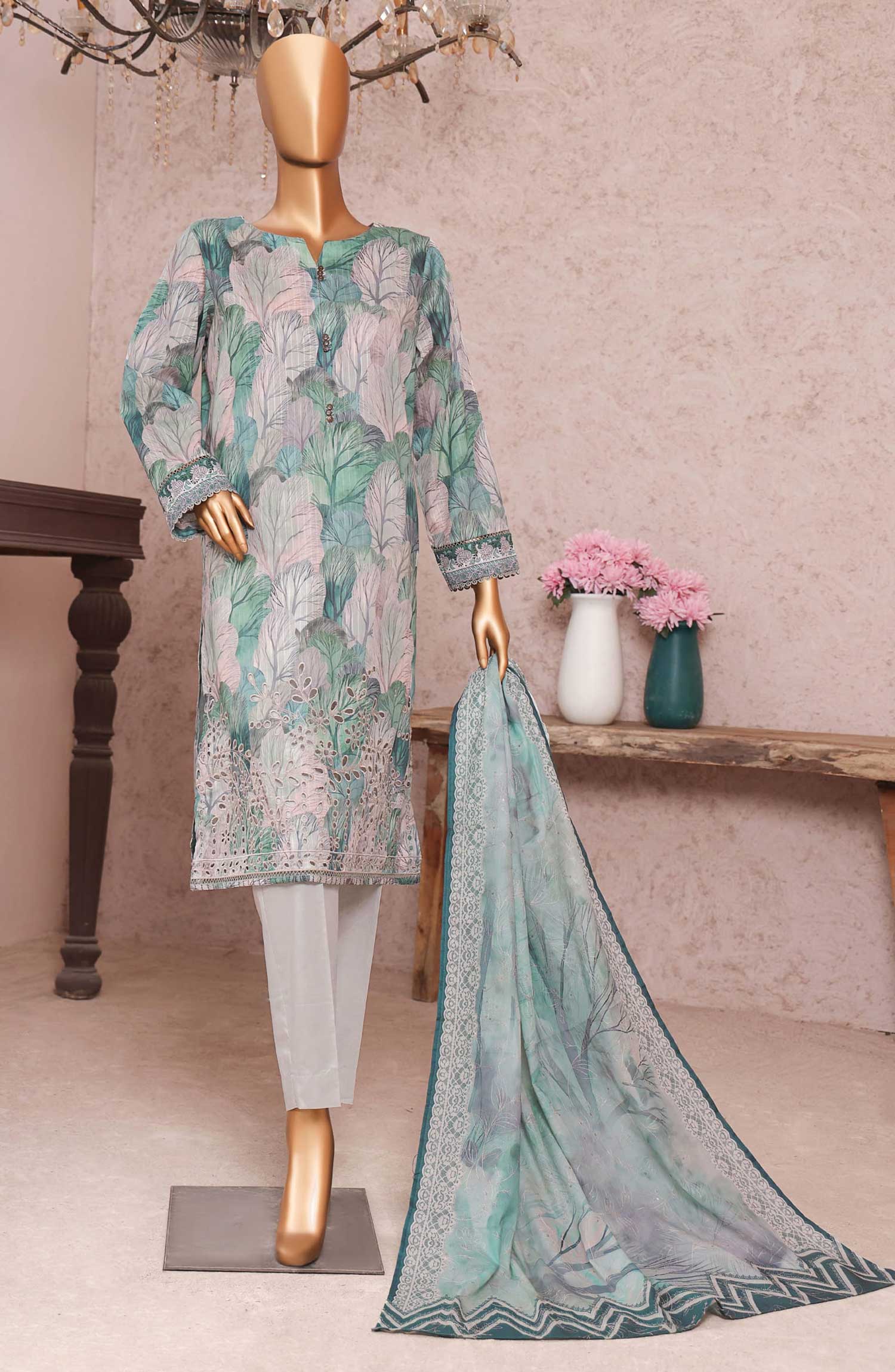 Digital Printed Doriya Embroidered Cotton Lawn Shirt