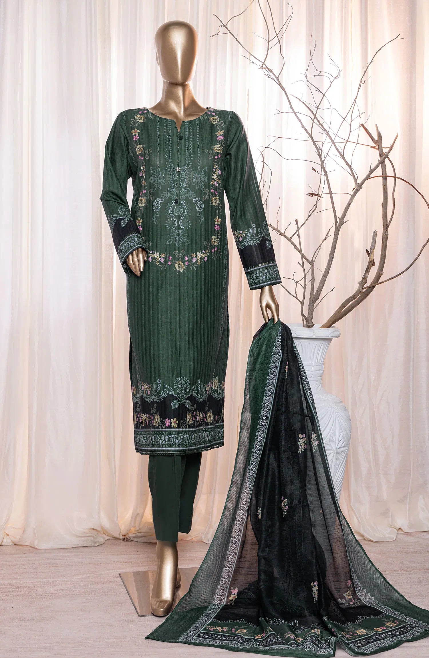 HZ Textile Digital Printed Linen Slub Unstitched 3 Piece Suit - LSD-306 - HZ25LNSL - Green - Winter Collection