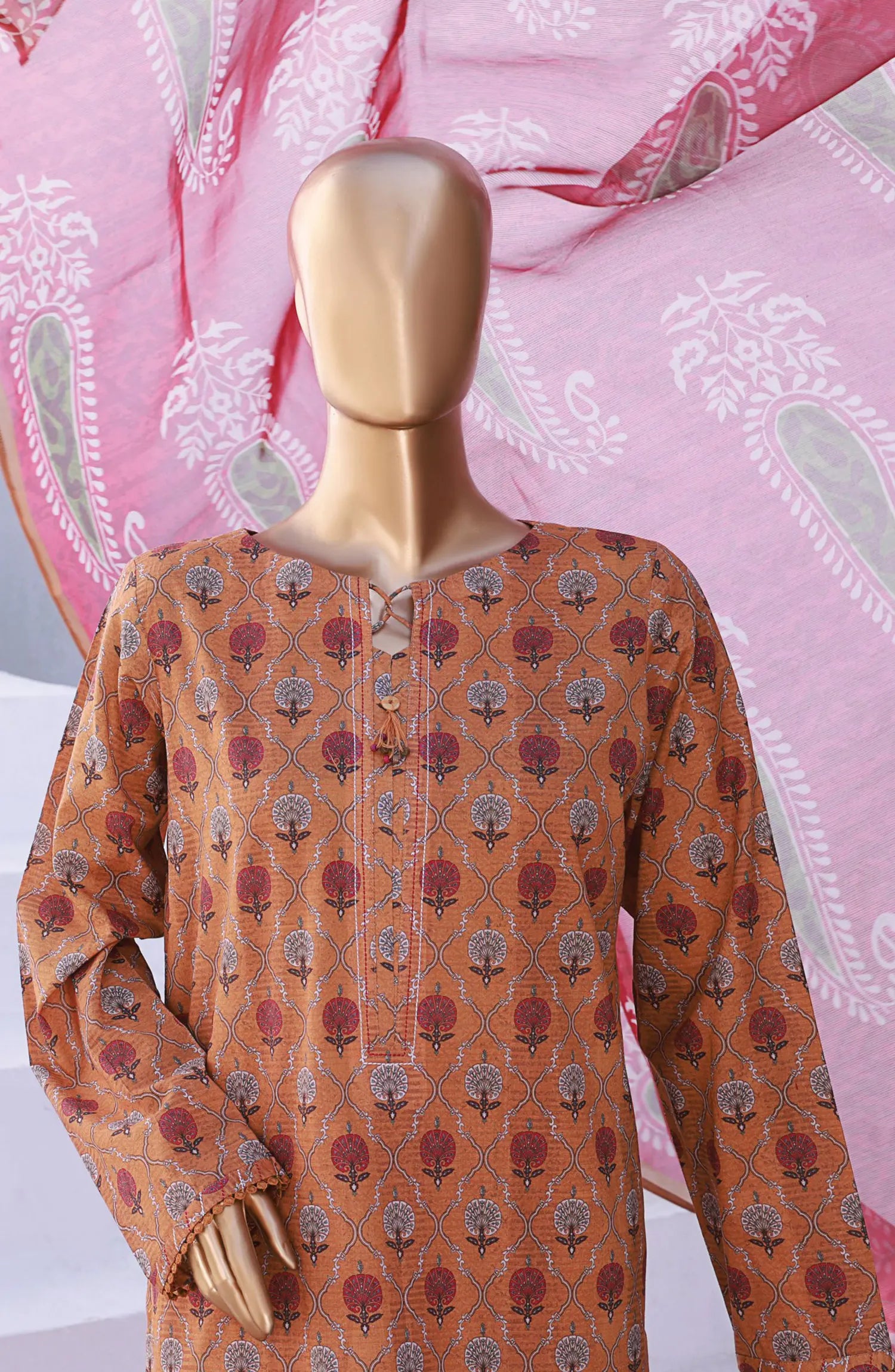 The standard style comes as a long-sleeved kameez with dupatta and trouser/shawlar.