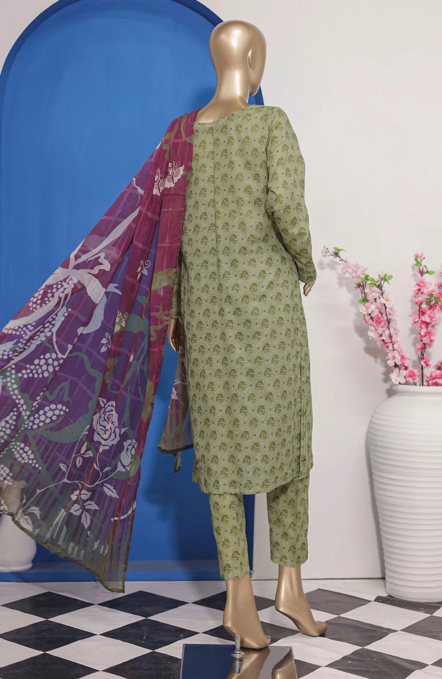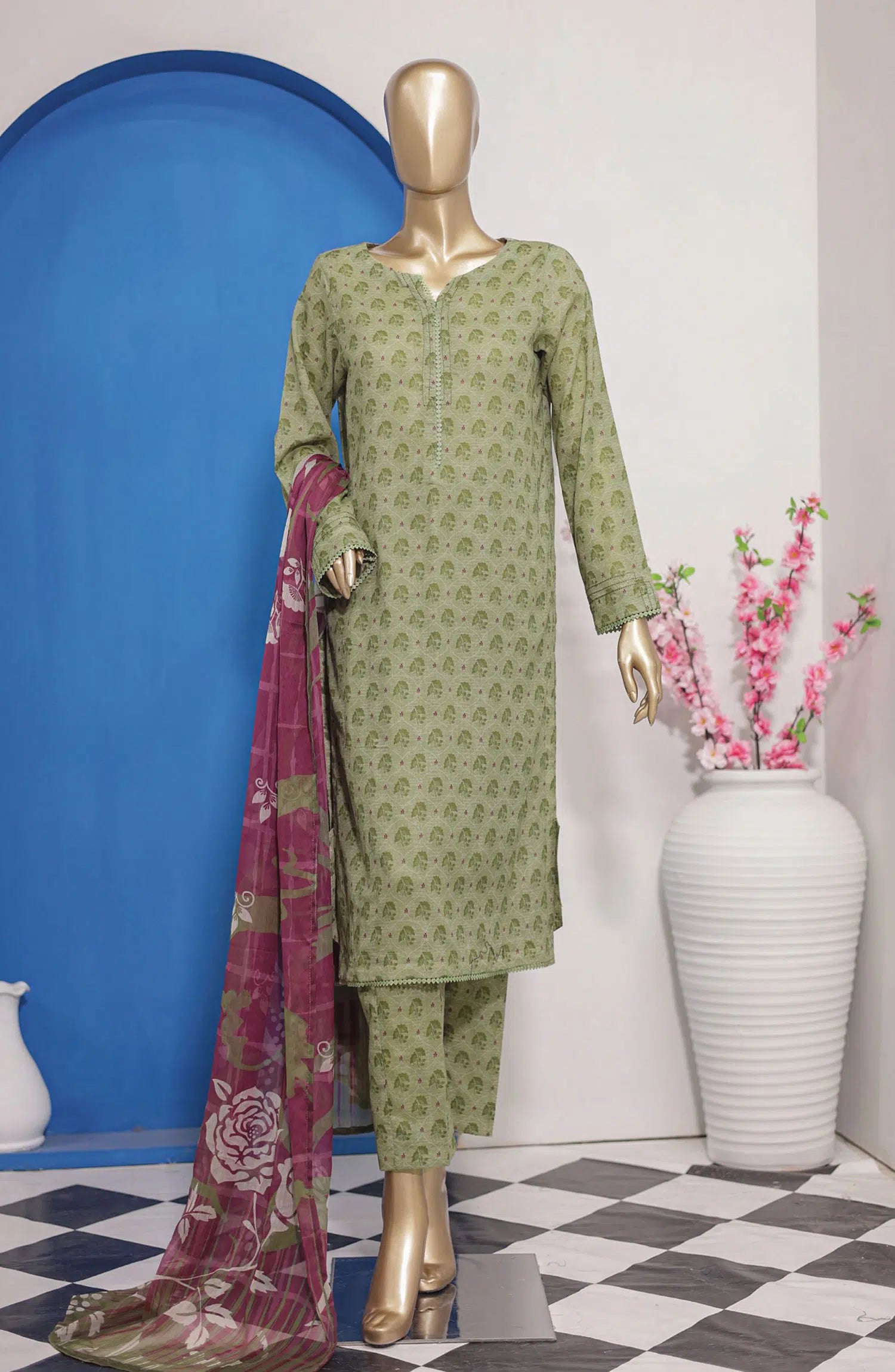 HZ Textile Digital Printed Linen Slub Unstitched 3 Piece Suit - LSD-306 - HZ25LNSL - Green - Winter Collection