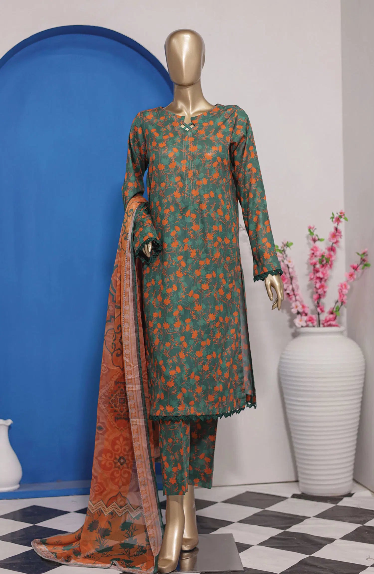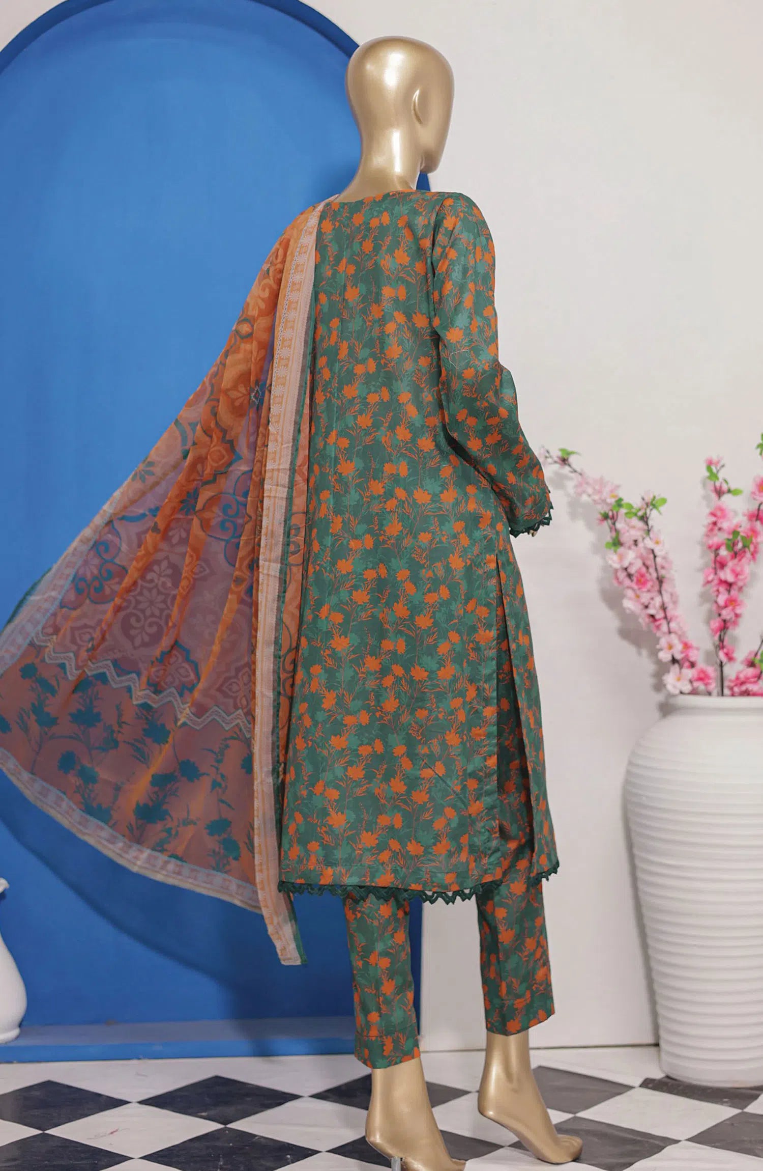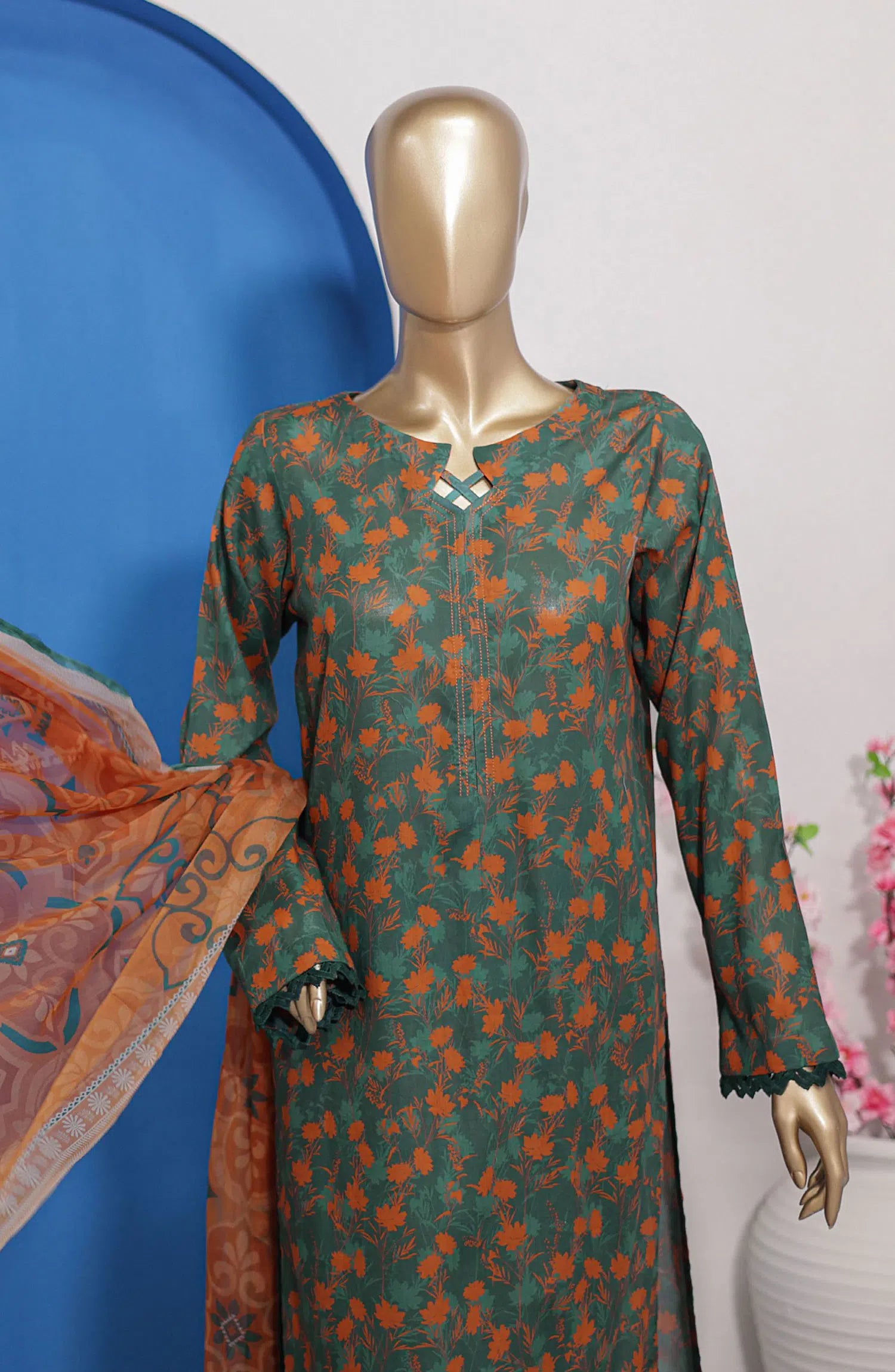 HZ Textile Digital Printed Linen Slub Unstitched 3 Piece Suit - LSD-306 - HZ25LNSL - Green - Winter Collection