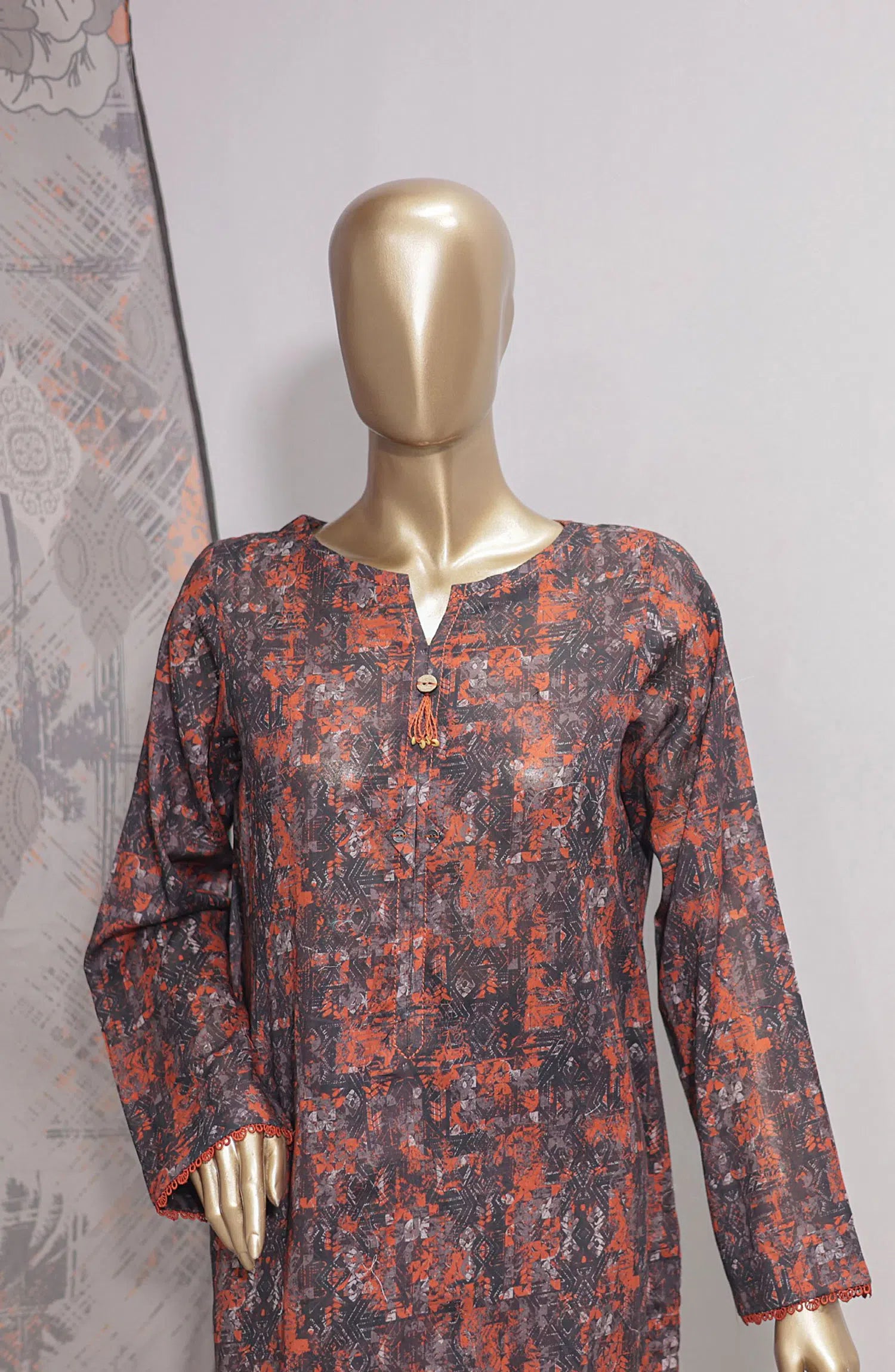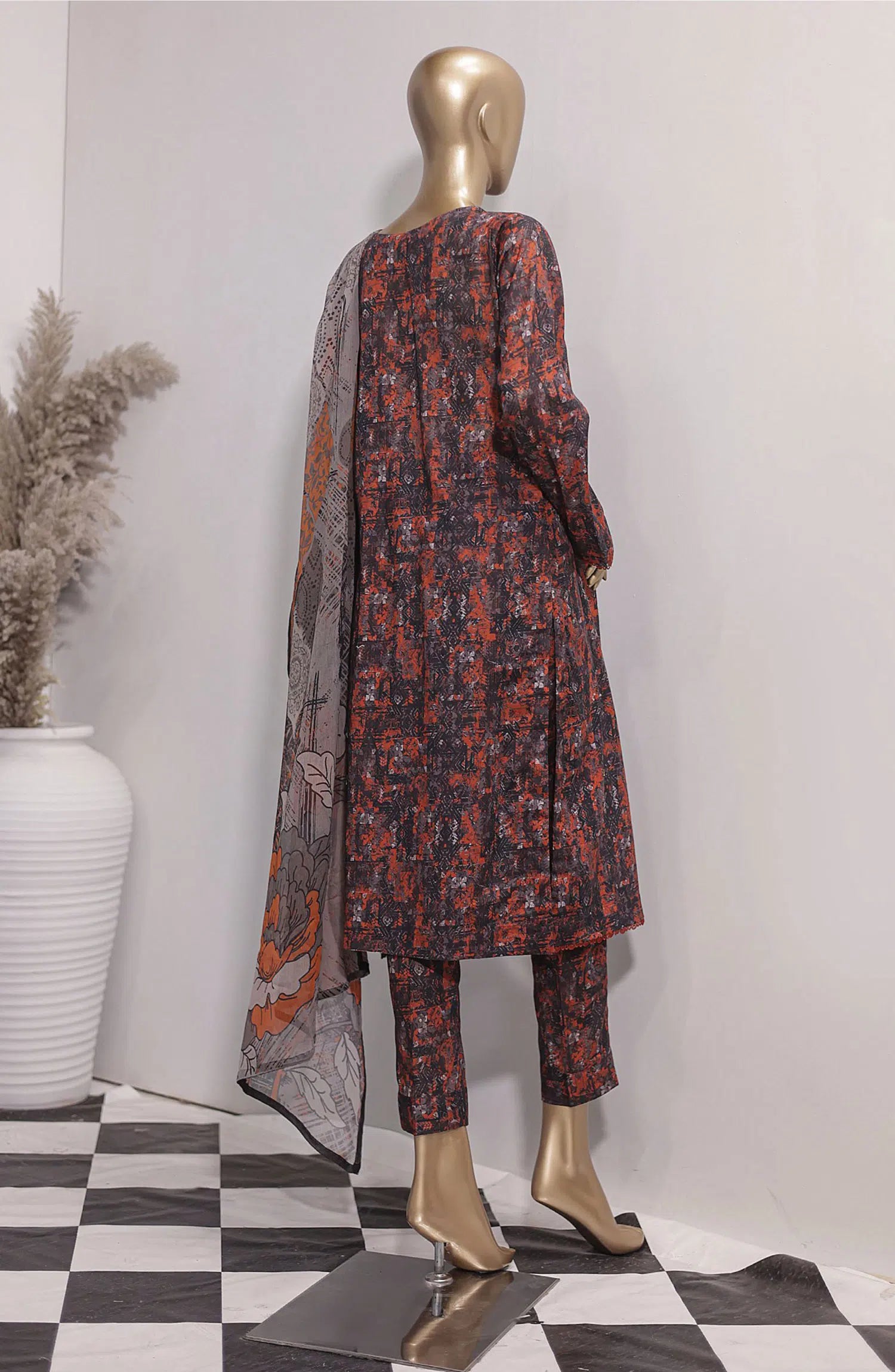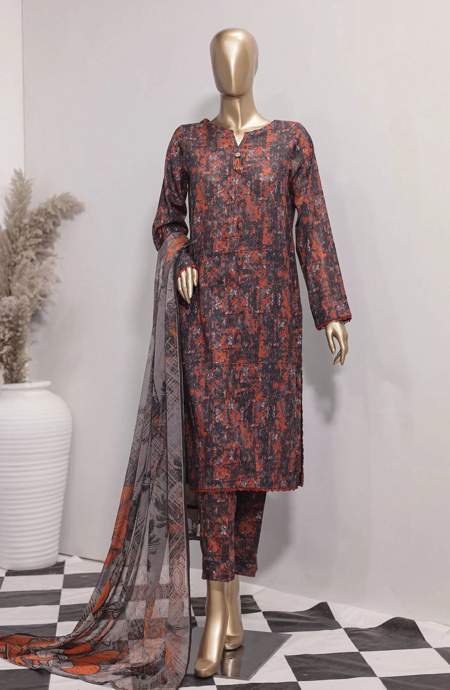 HZ Textile Digital Printed Linen Slub Unstitched 3 Piece Suit - LSD-307 - HZ25LNSL - Red - Winter Collection