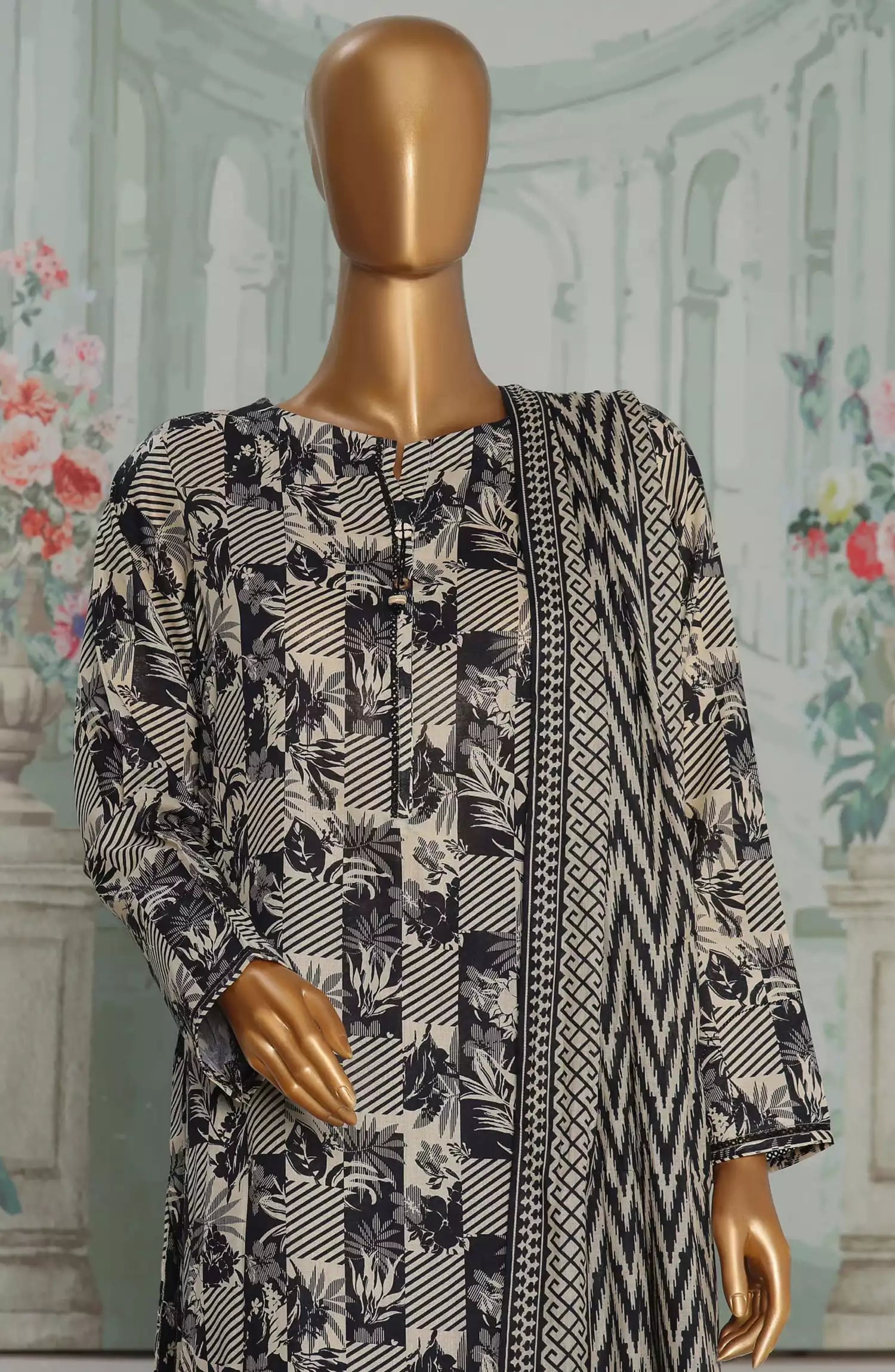 Modest Printed Cotton Stitched 3 Piece Suit - 9705-Wht - MOD25PRF - White - Festive Girls Collection