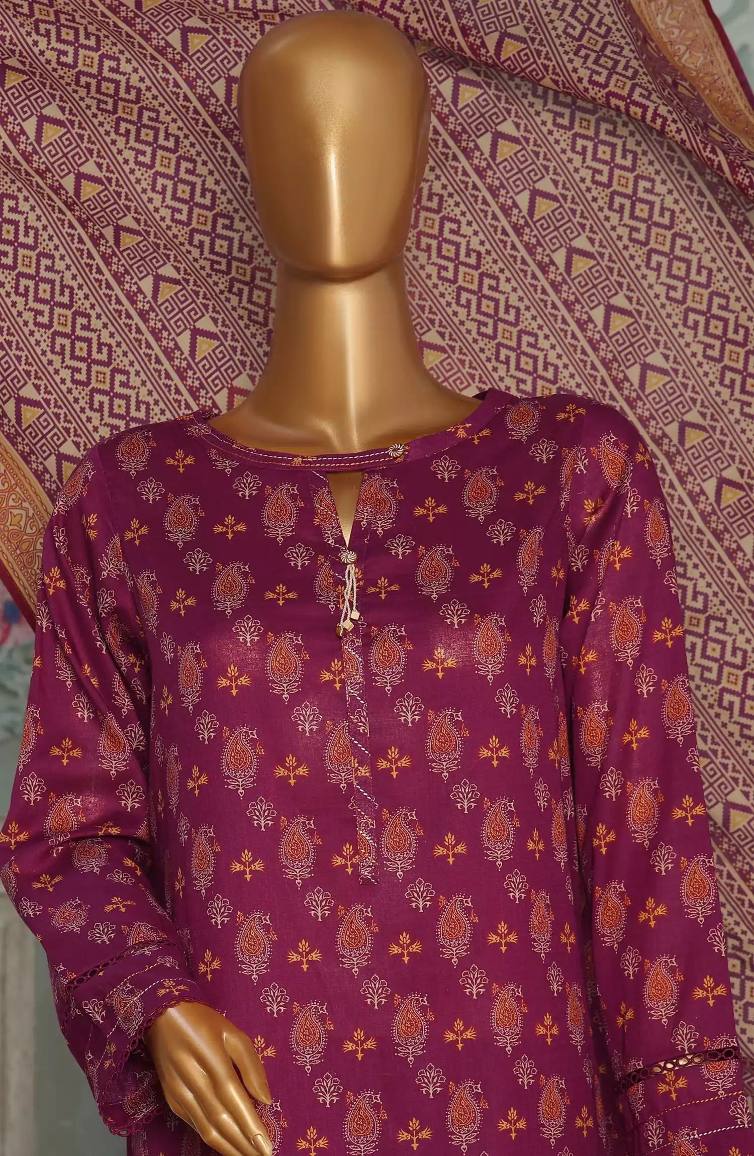 Modest Printed Cotton Stitched 3 Piece Suit - 9755-Prpl - MOD25PRF - Purple - Festive Girls Collection