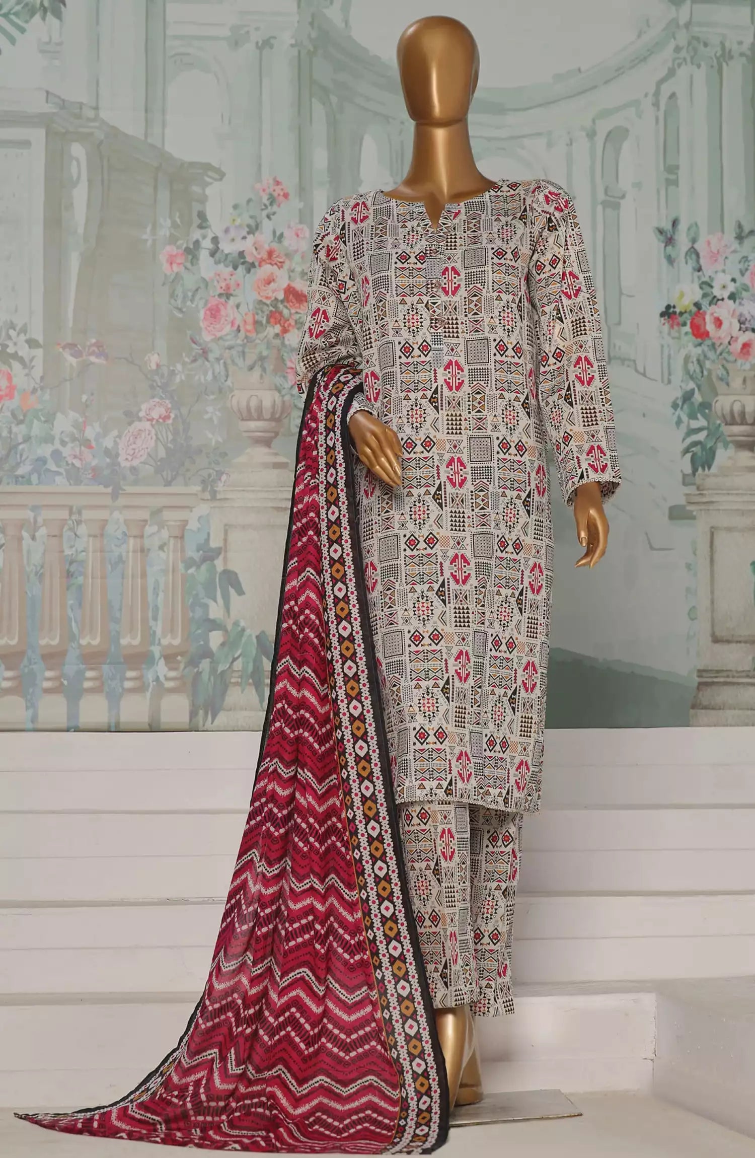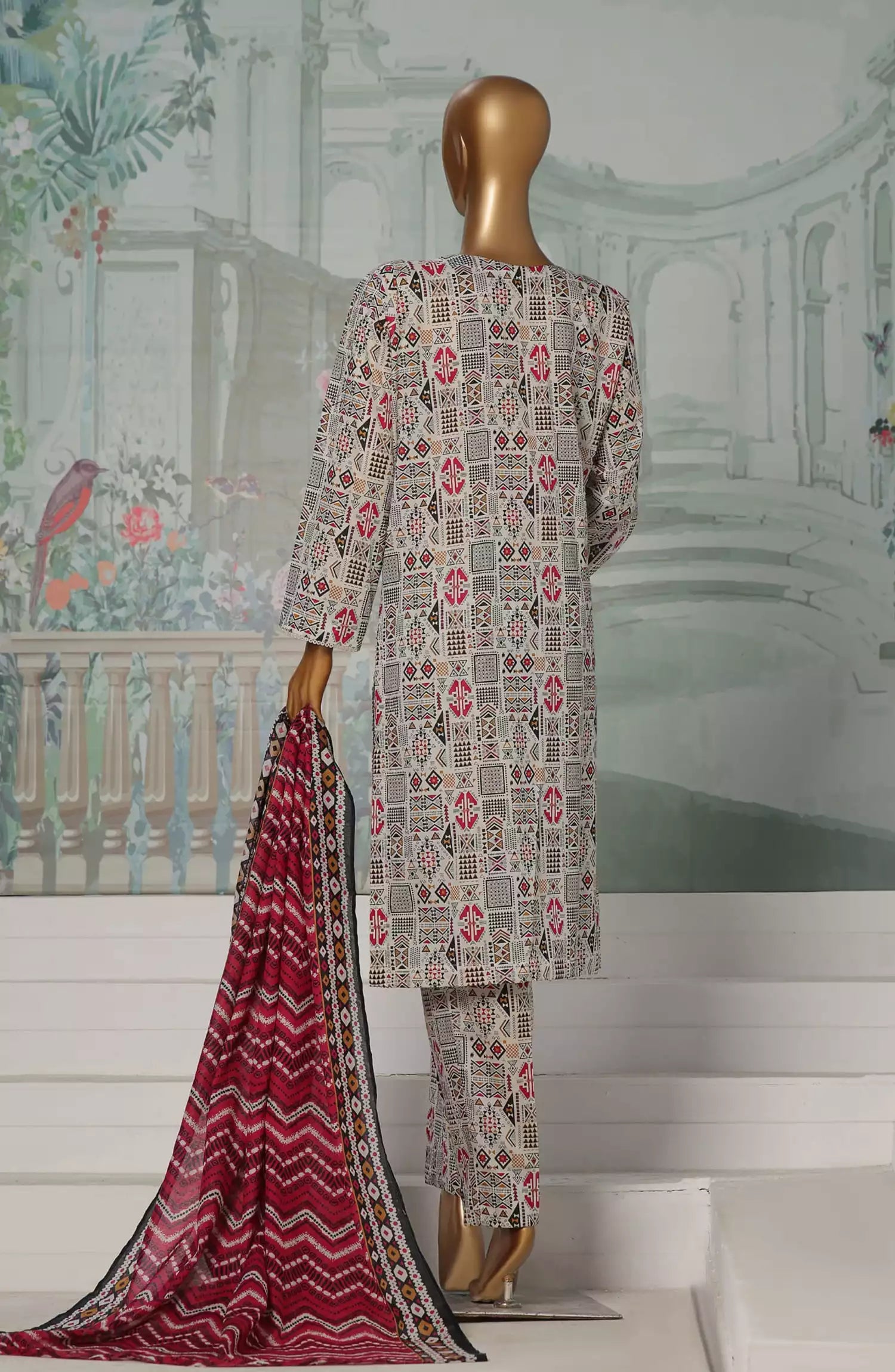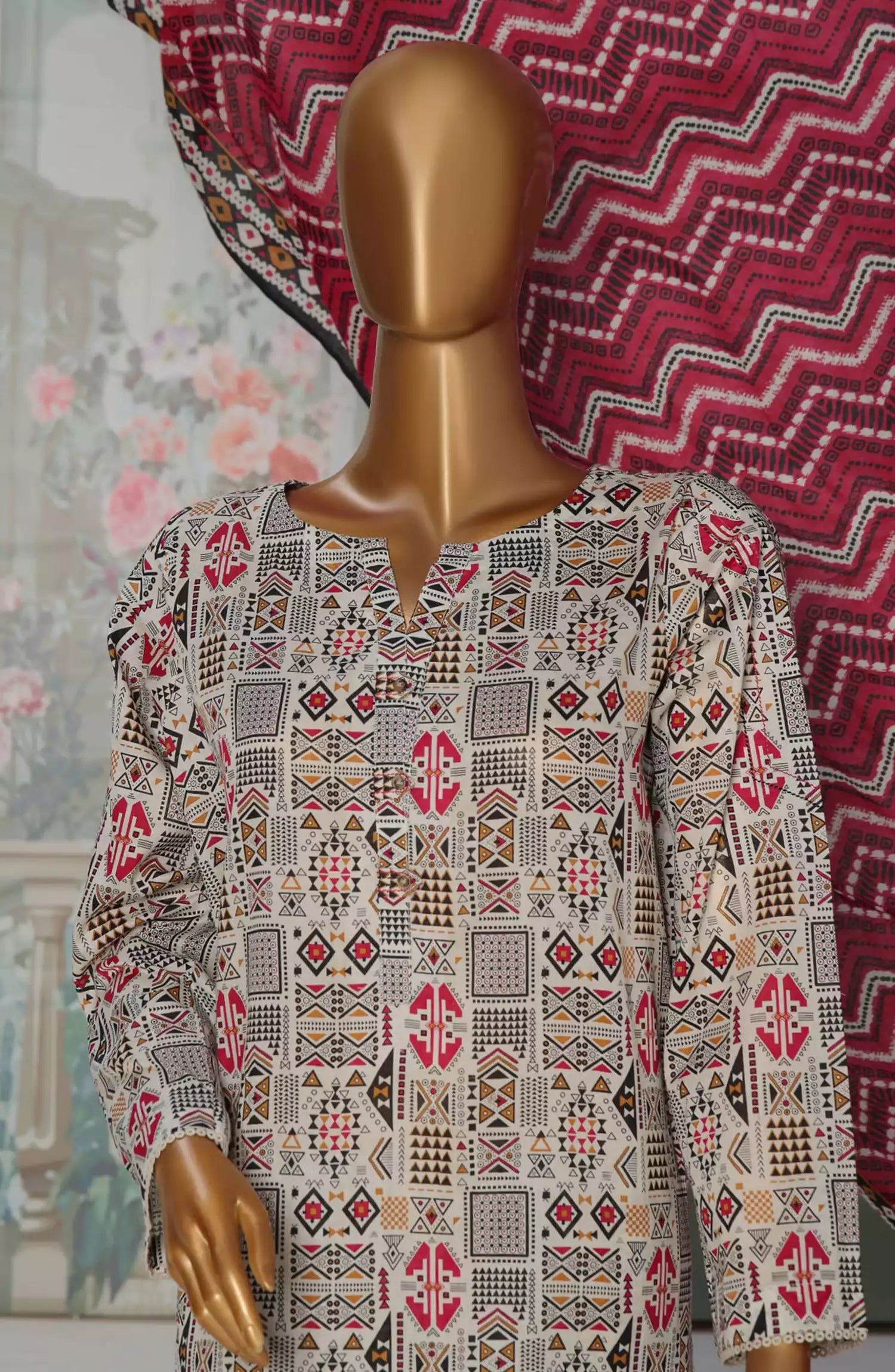 Modest Printed Cotton Stitched 3 Piece Suit - 9705-Wht - MOD25PRF - White - Festive Girls Collection