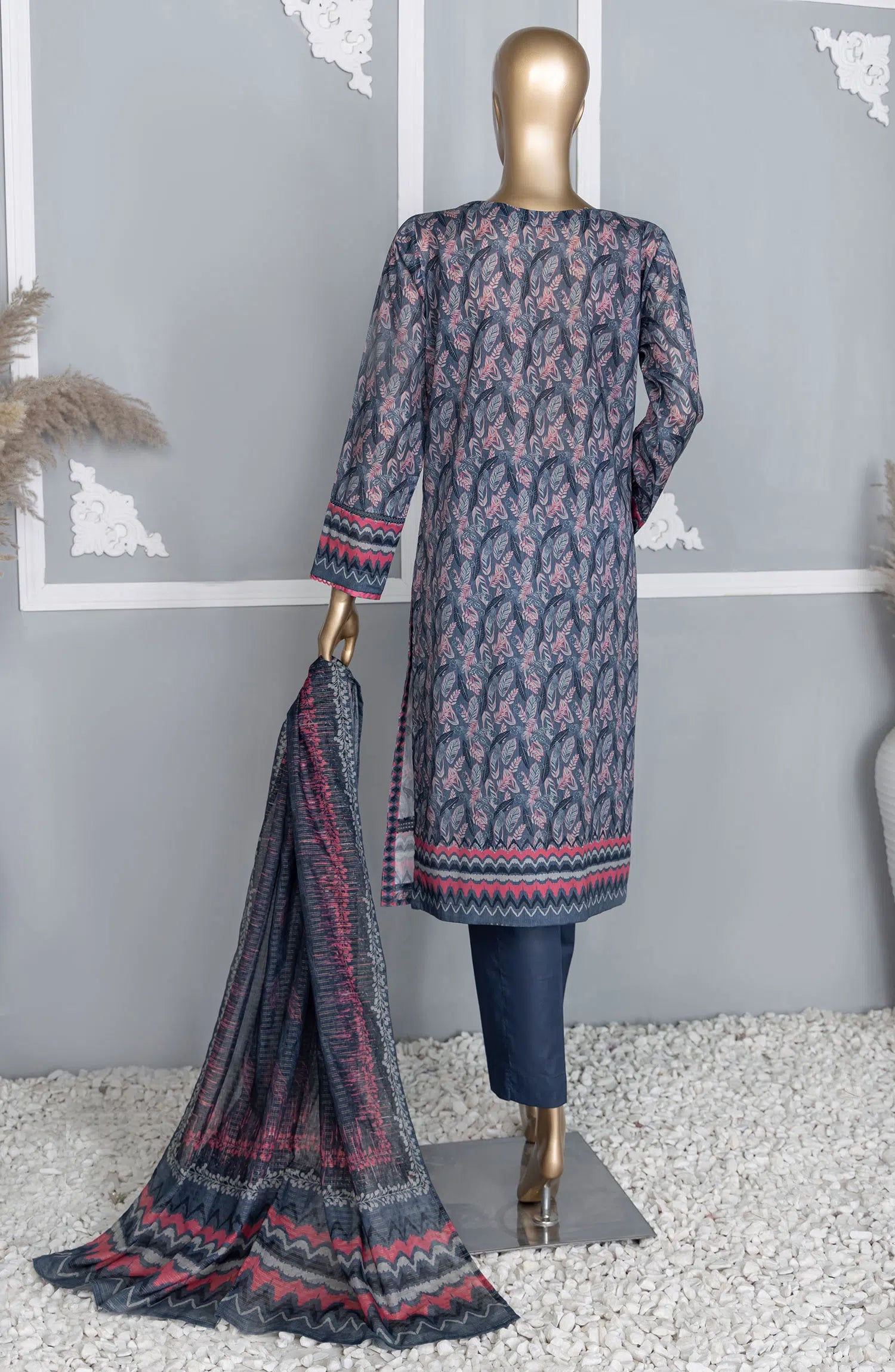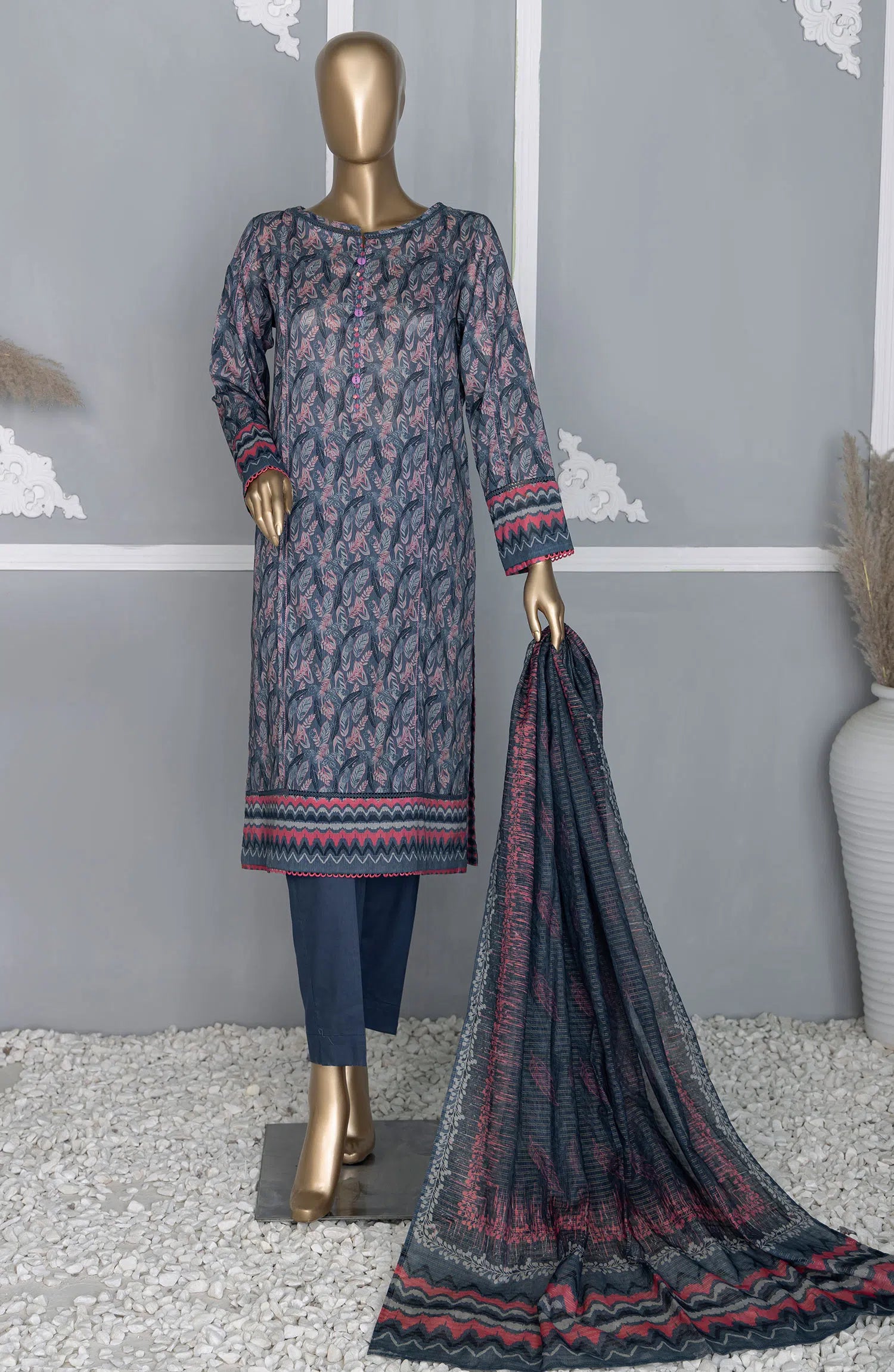 HZ Textile Digital Printed Linen Slub Unstitched 3 Piece Suit - LSD-308 - HZ25LNSL - Blue - Winter Collection