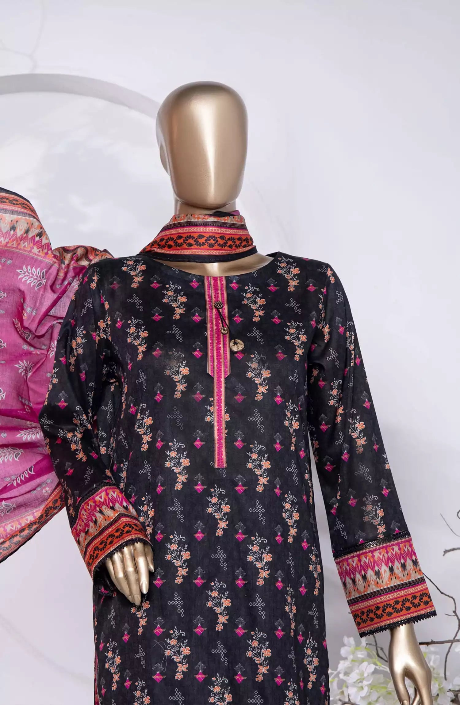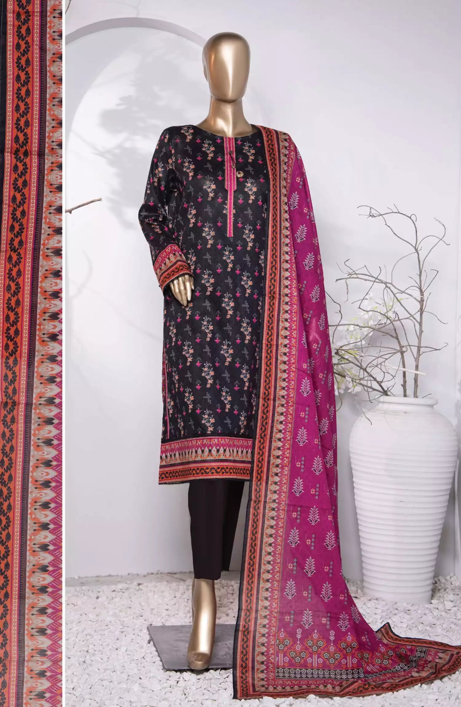 HZ Platinum Digital Printed Cotton Lawn Collection 2024 has been styled in the image for photography and illustrative purposes.