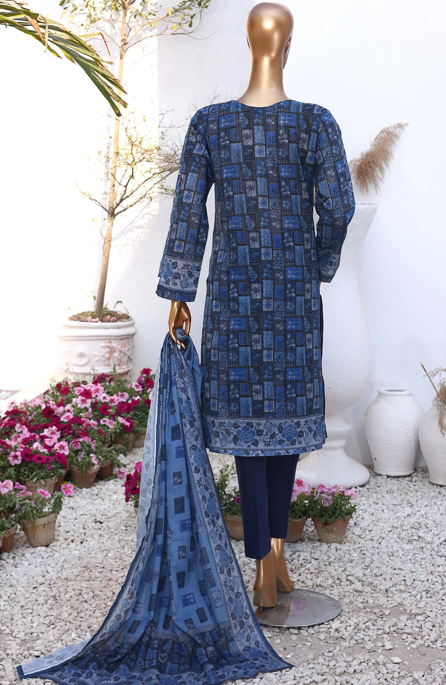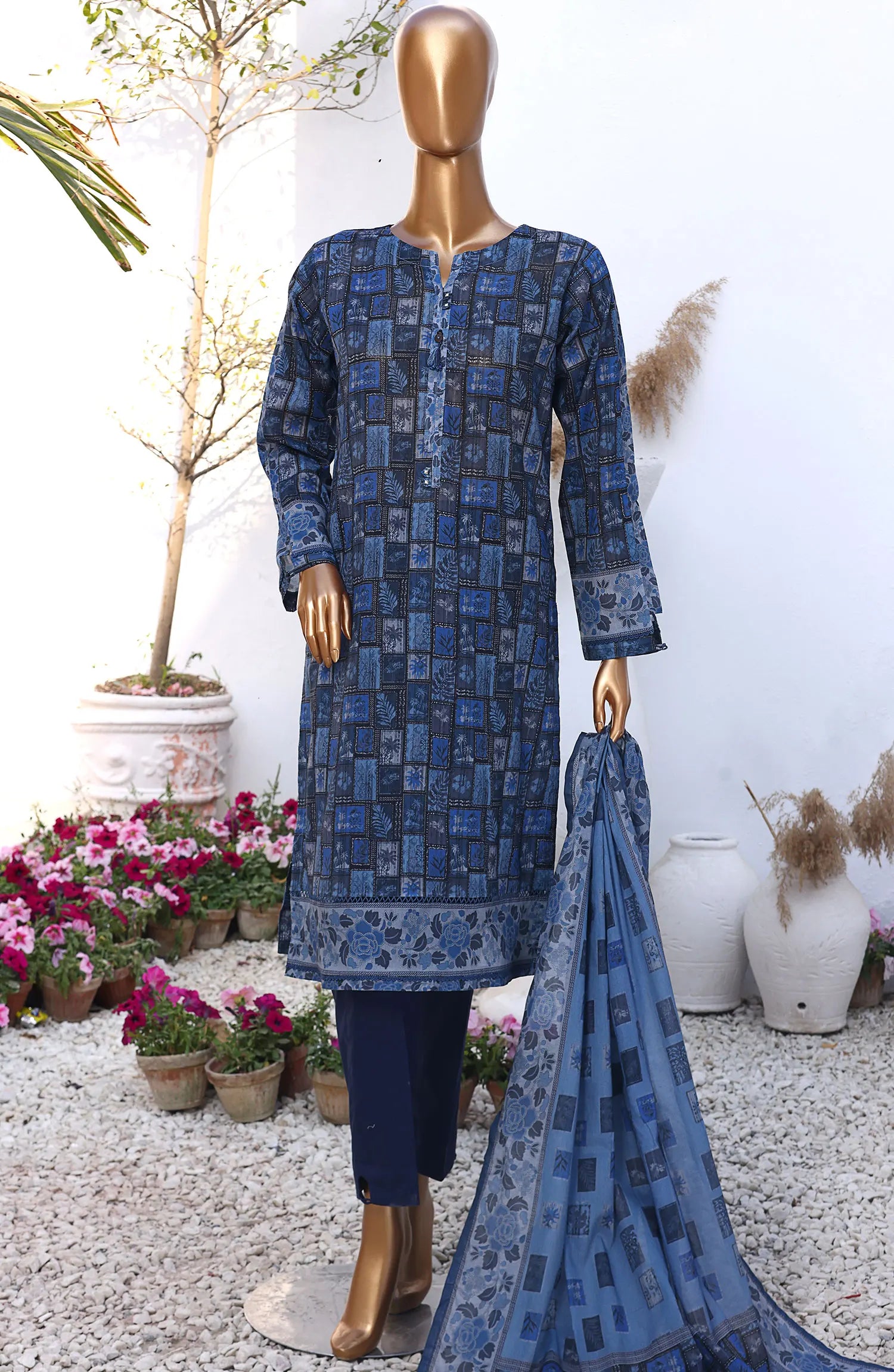 HZ Textile Digital Printed Linen Slub Unstitched 3 Piece Suit - LSD-308 - HZ25LNSL - Blue - Winter Collection