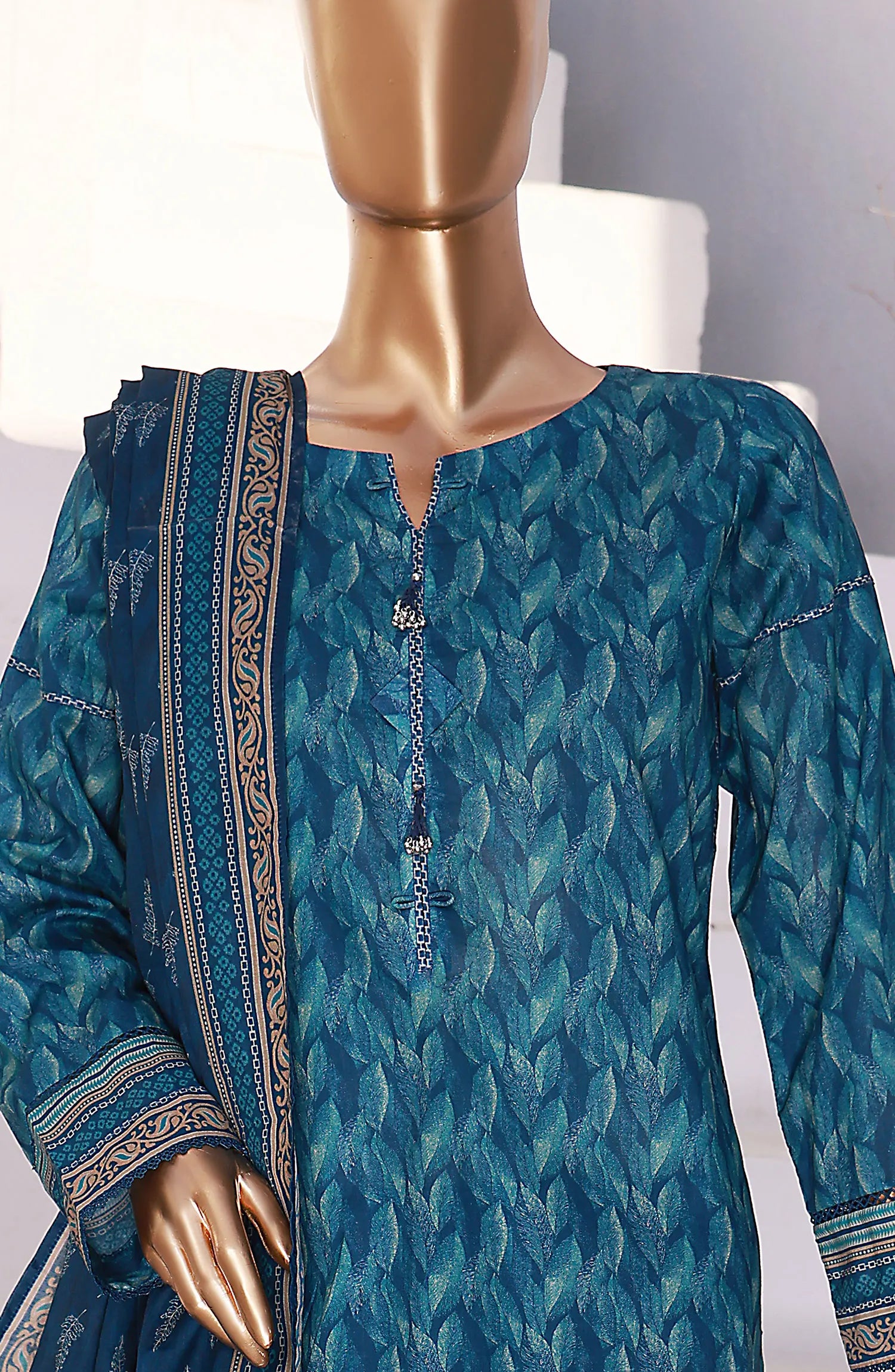 HZ Textile Digital Printed Linen Slub Unstitched 3 Piece Suit - LSD-308 - HZ25LNSL - Blue - Winter Collection