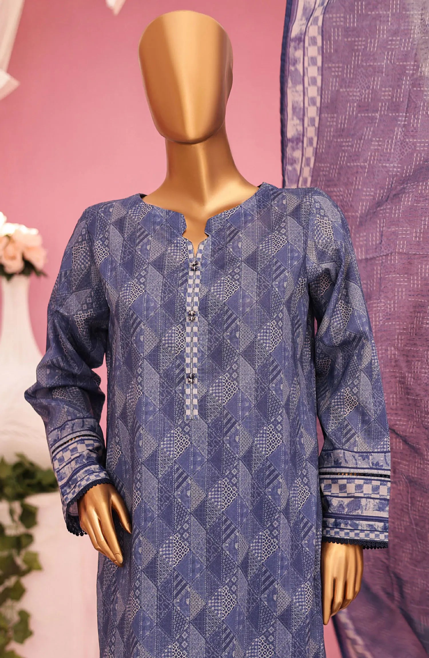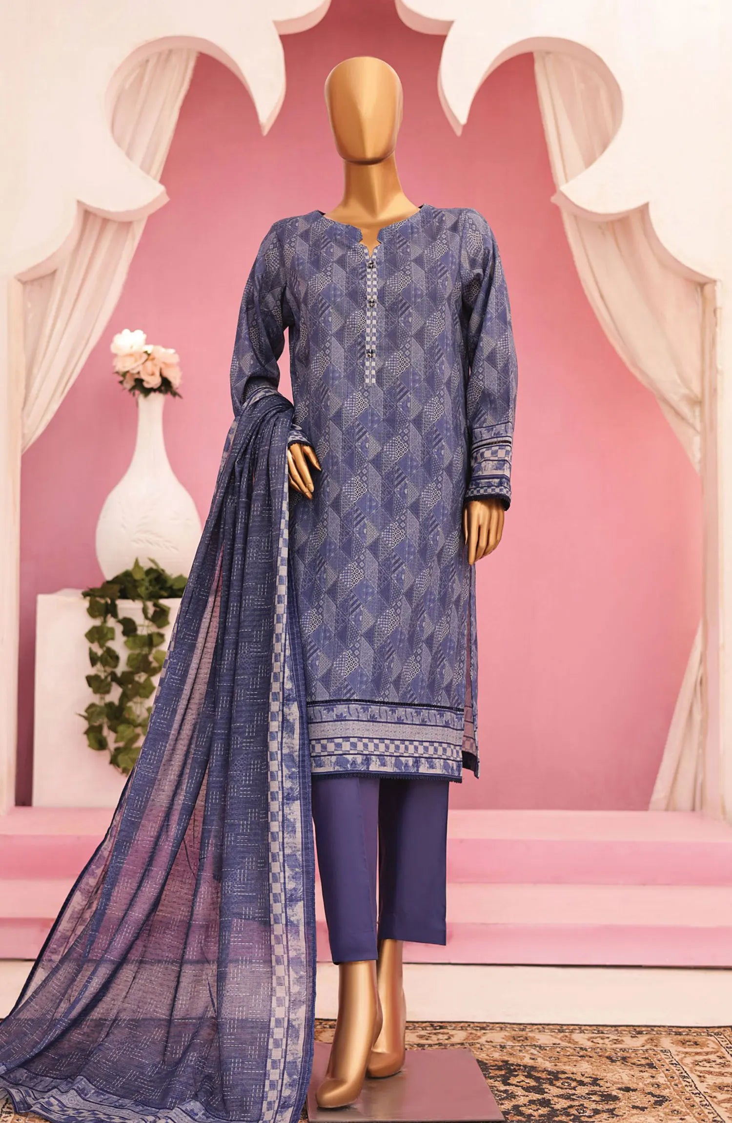 HZ Textile Digital Printed Linen Slub Unstitched 3 Piece Suit - LSD-308 - HZ25LNSL - Blue - Winter Collection
