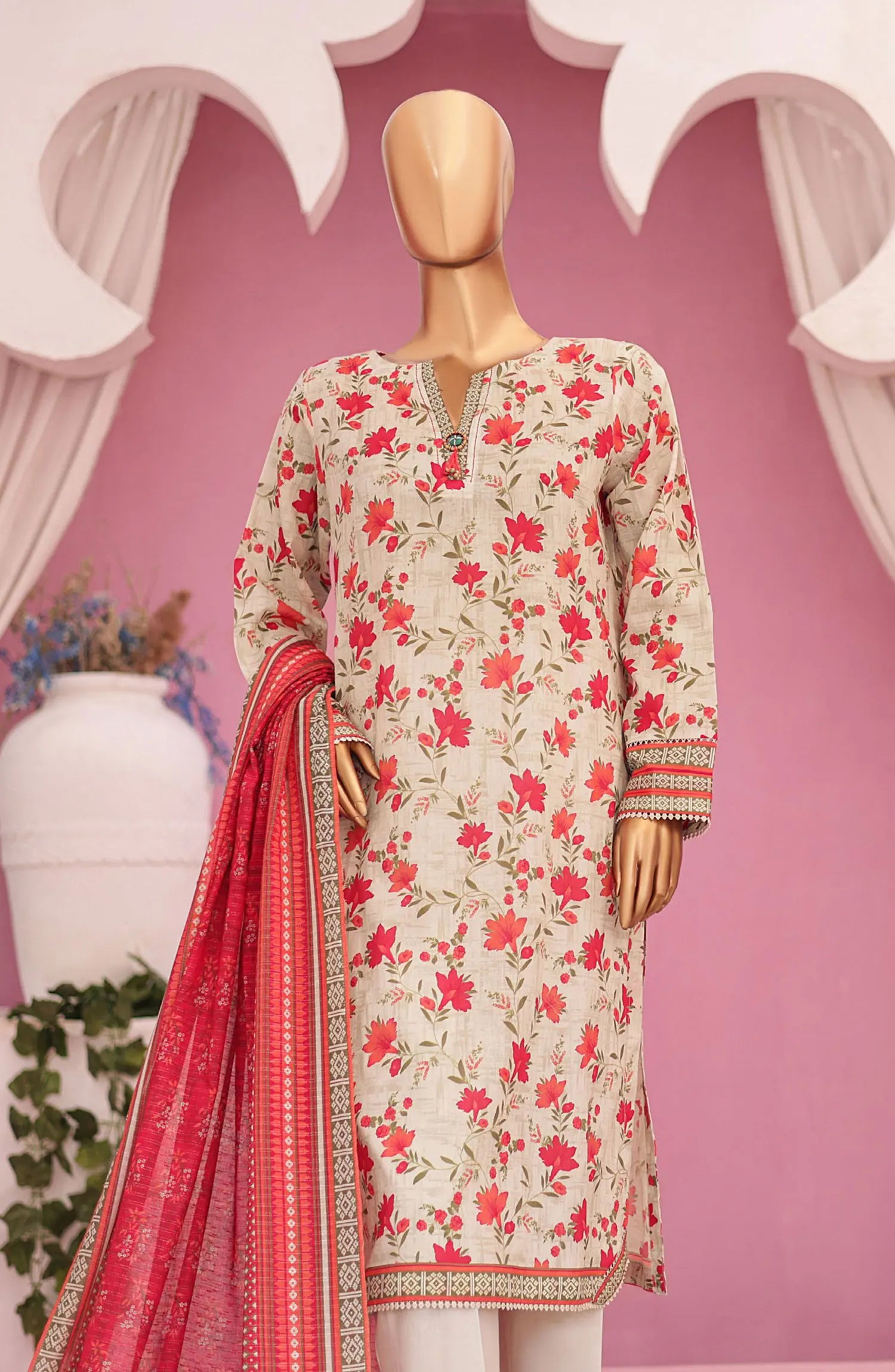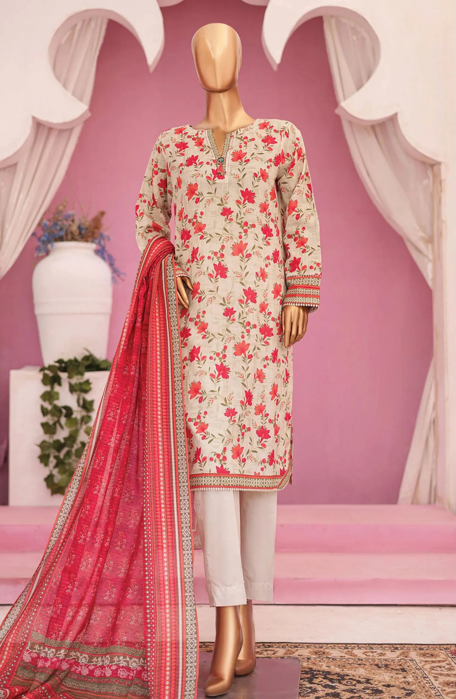HZ Platinum Digital Printed Lawn Collection has been styled in the image for photography and illustrative purposes.