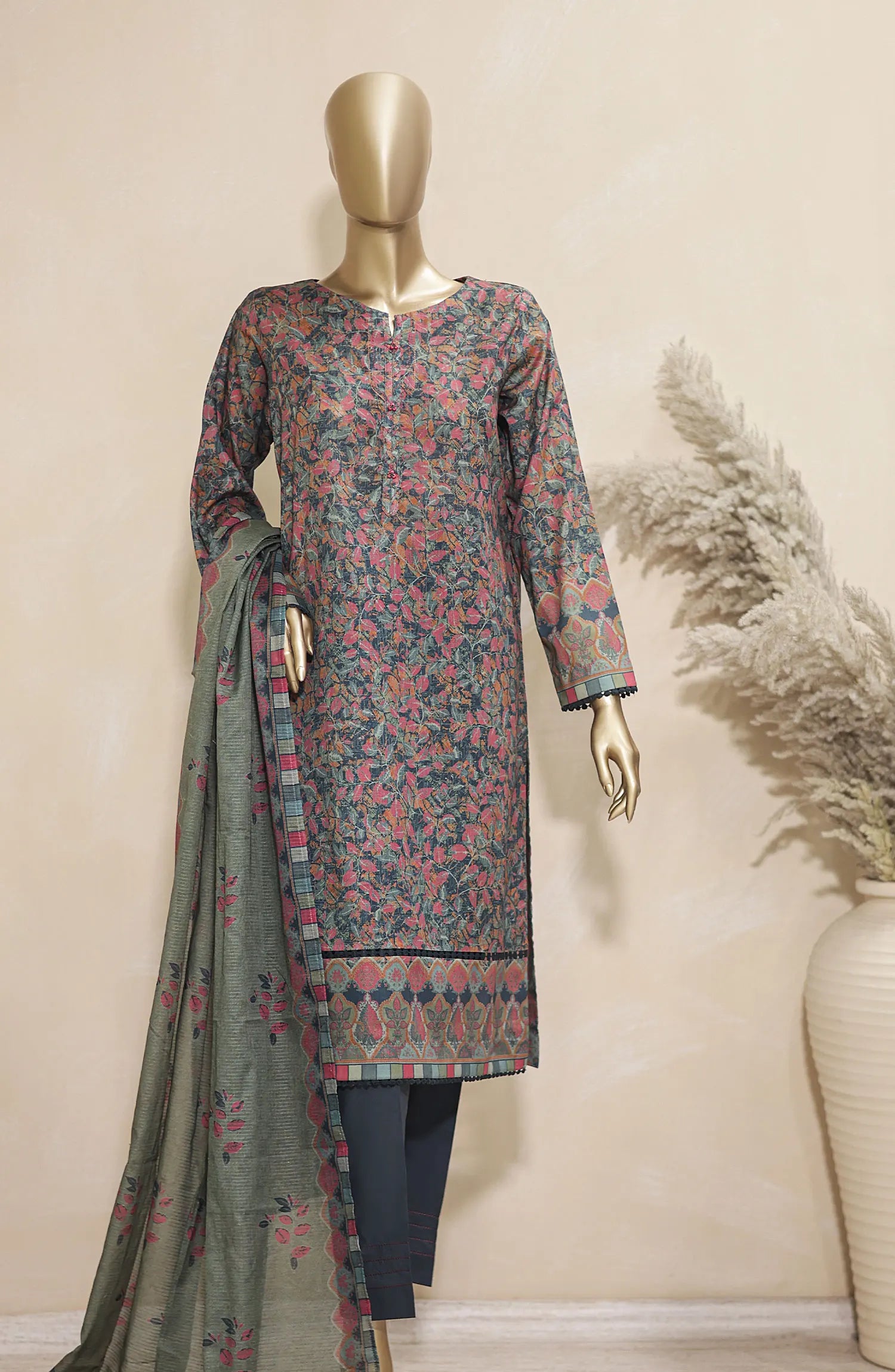 HZ Platinum Digital Printed Lawn with Doriya Dupatta Collection 2024 has been styled in the image for photography and illustrative purposes.