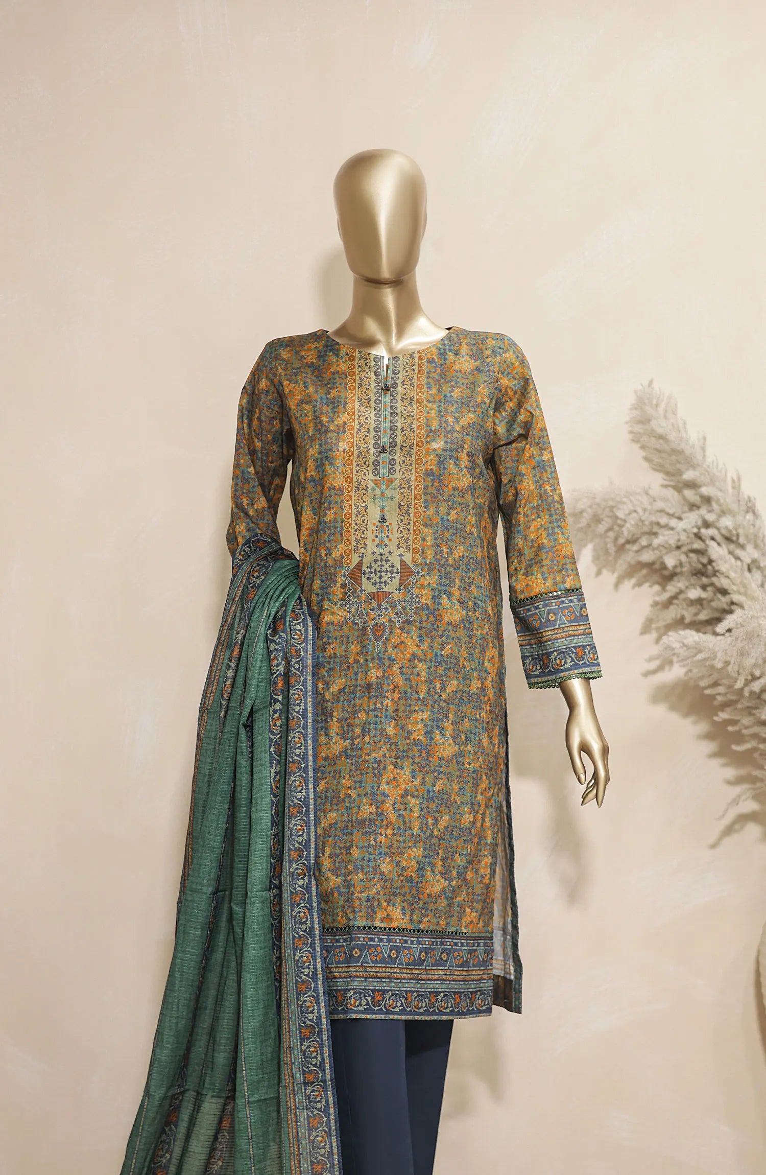 HZ Textile Digital Printed Linen Slub Unstitched 3 Piece Suit - LSD-309 - HZ25LNSL - Mustard - Winter Collection