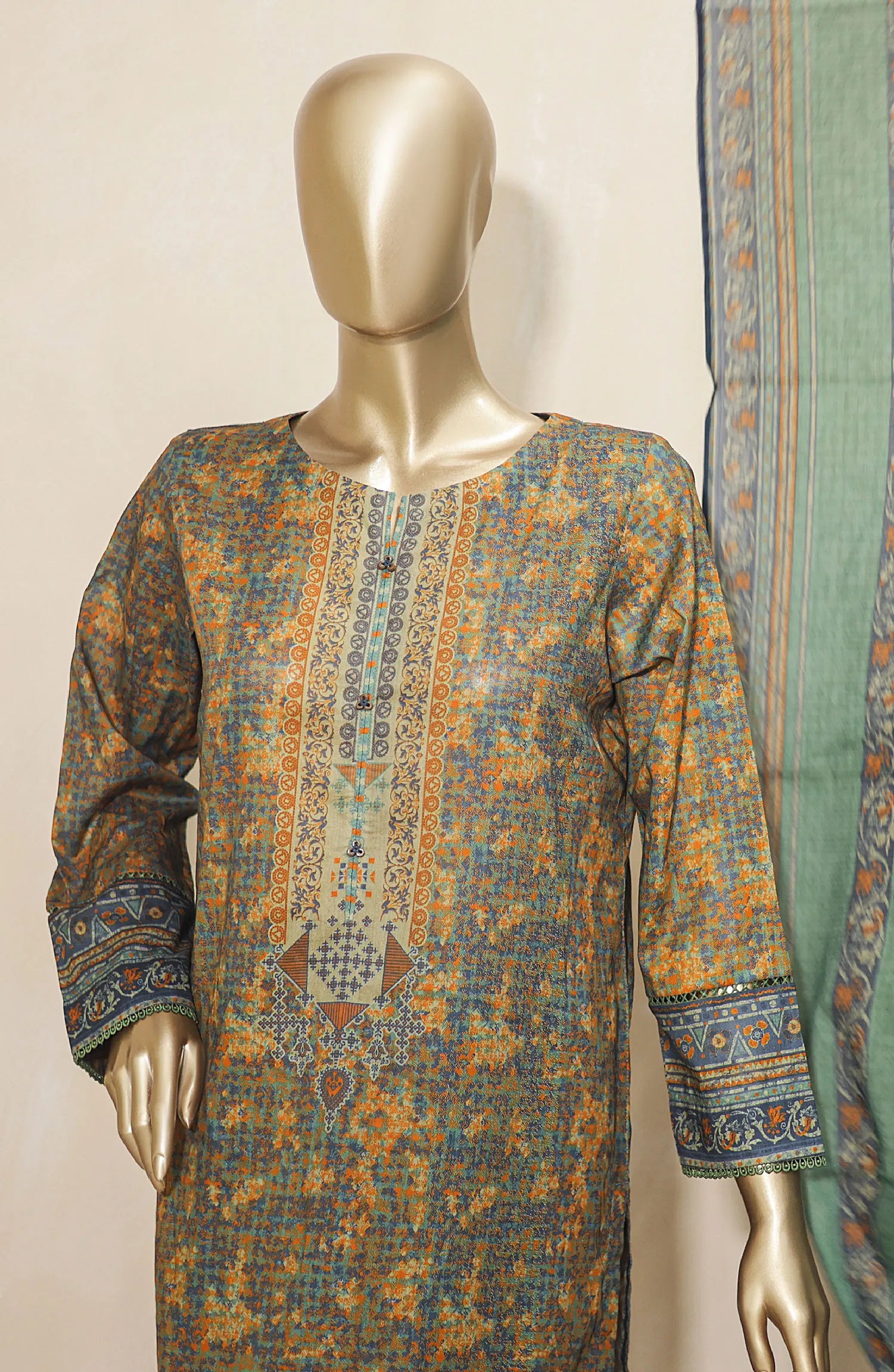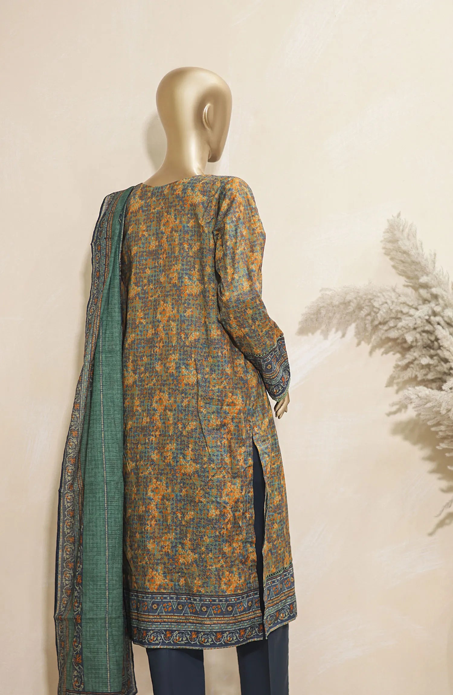 HZ Textile Digital Printed Linen Slub Unstitched 3 Piece Suit - LSD-306 - HZ25LNSL - Green - Winter Collection