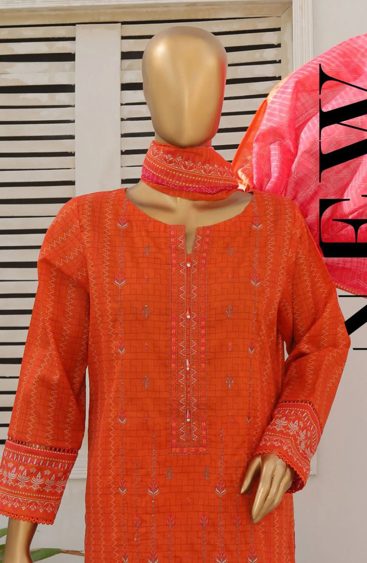 Modest Embroidered Chiffon Stitched 3 Piece Suit - 9840-Cblu - MOD25PRF - Blue - Festive Girls Collection