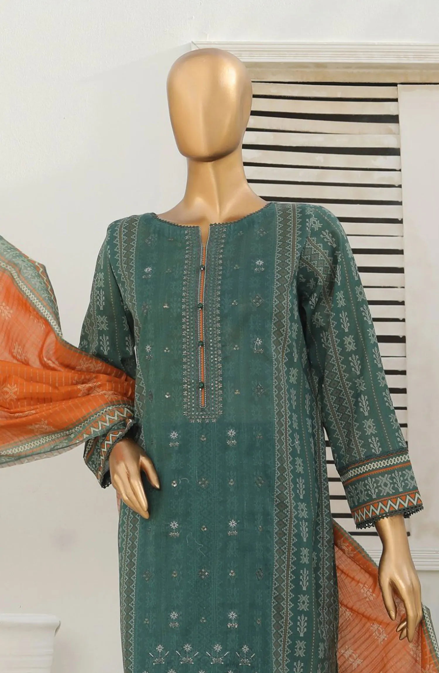 Modest Embroidered Chiffon Stitched 3 Piece Suit - 9740-Grn - MOD25PRF - Green - Festive Girls Collection