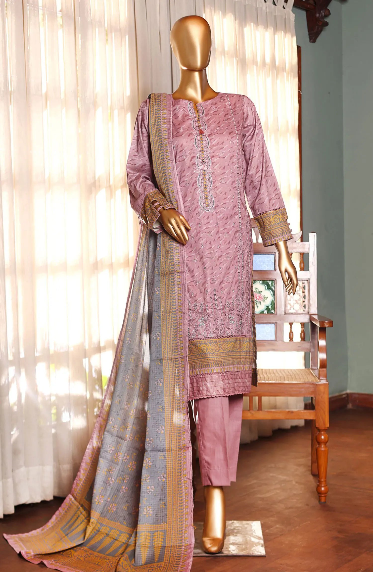 Home HZ Premium Emb Lawn Shirt with Fancy Printed Dupatta Collection - PEC-177