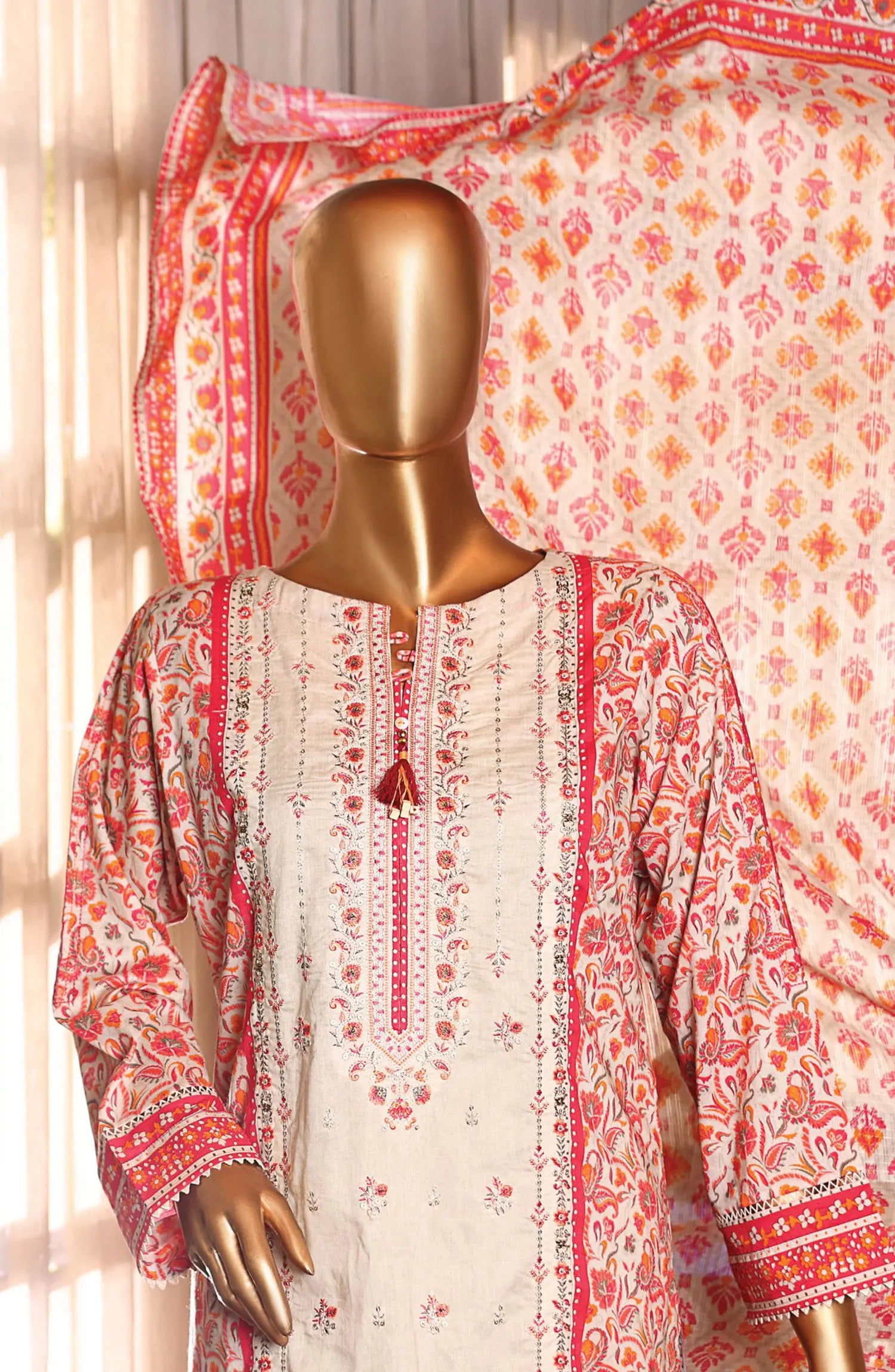 HZ Textile Digital Printed Linen Slub Unstitched 3 Piece Suit - LSD-305 - HZ25LNSL - Pink - Winter Collection