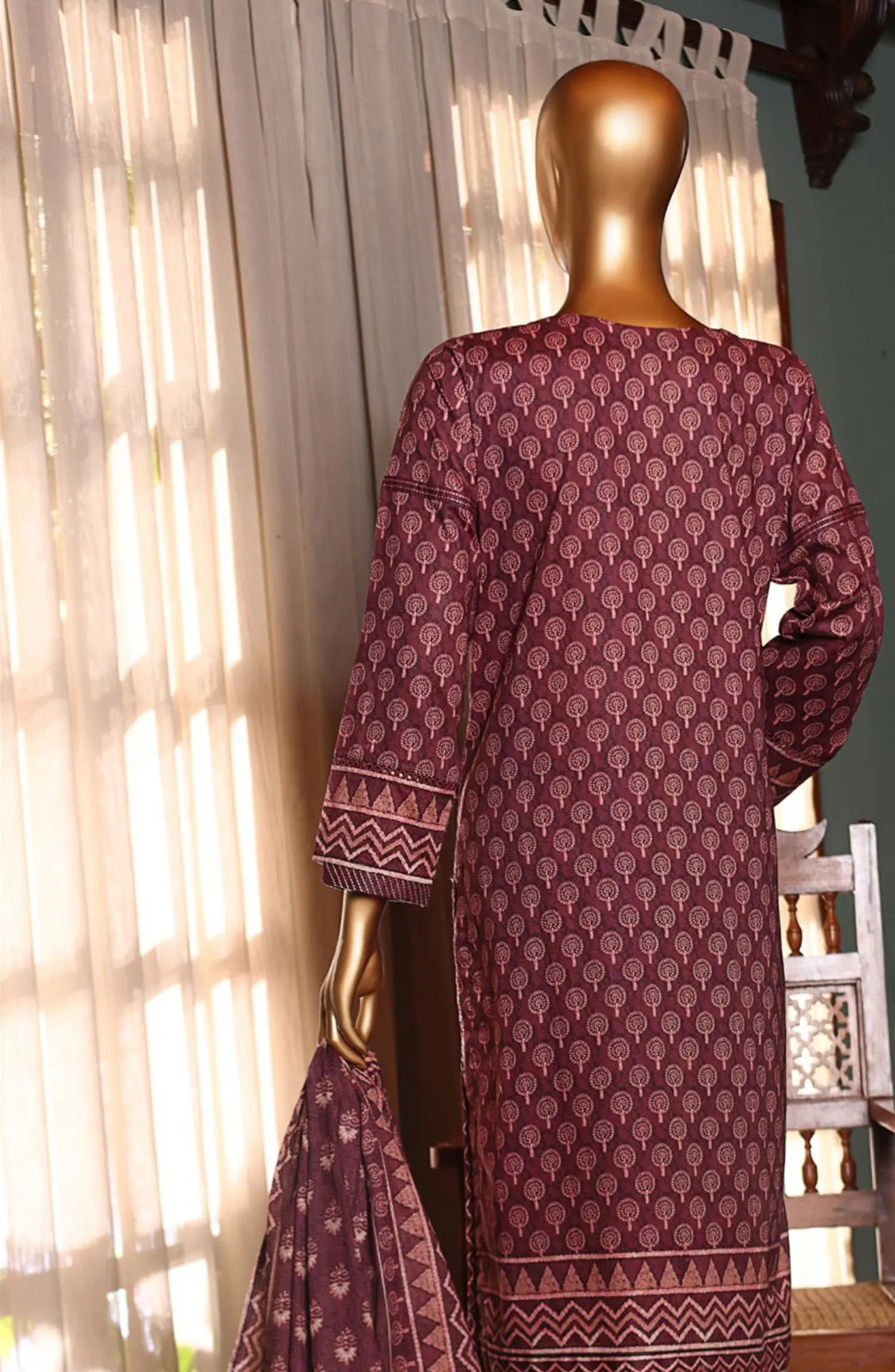 HZ Textile Digital Printed Linen Slub Unstitched 3 Piece Suit - LSD-307 - HZ25LNSL - Red - Winter Collection