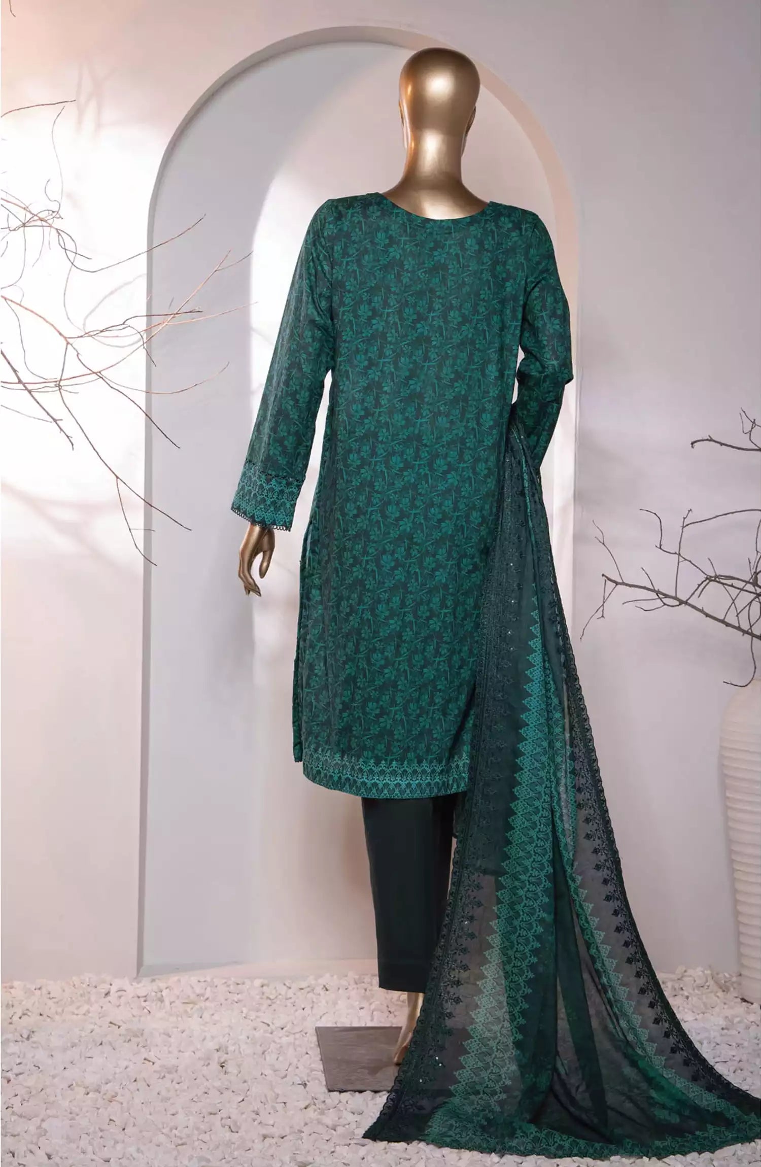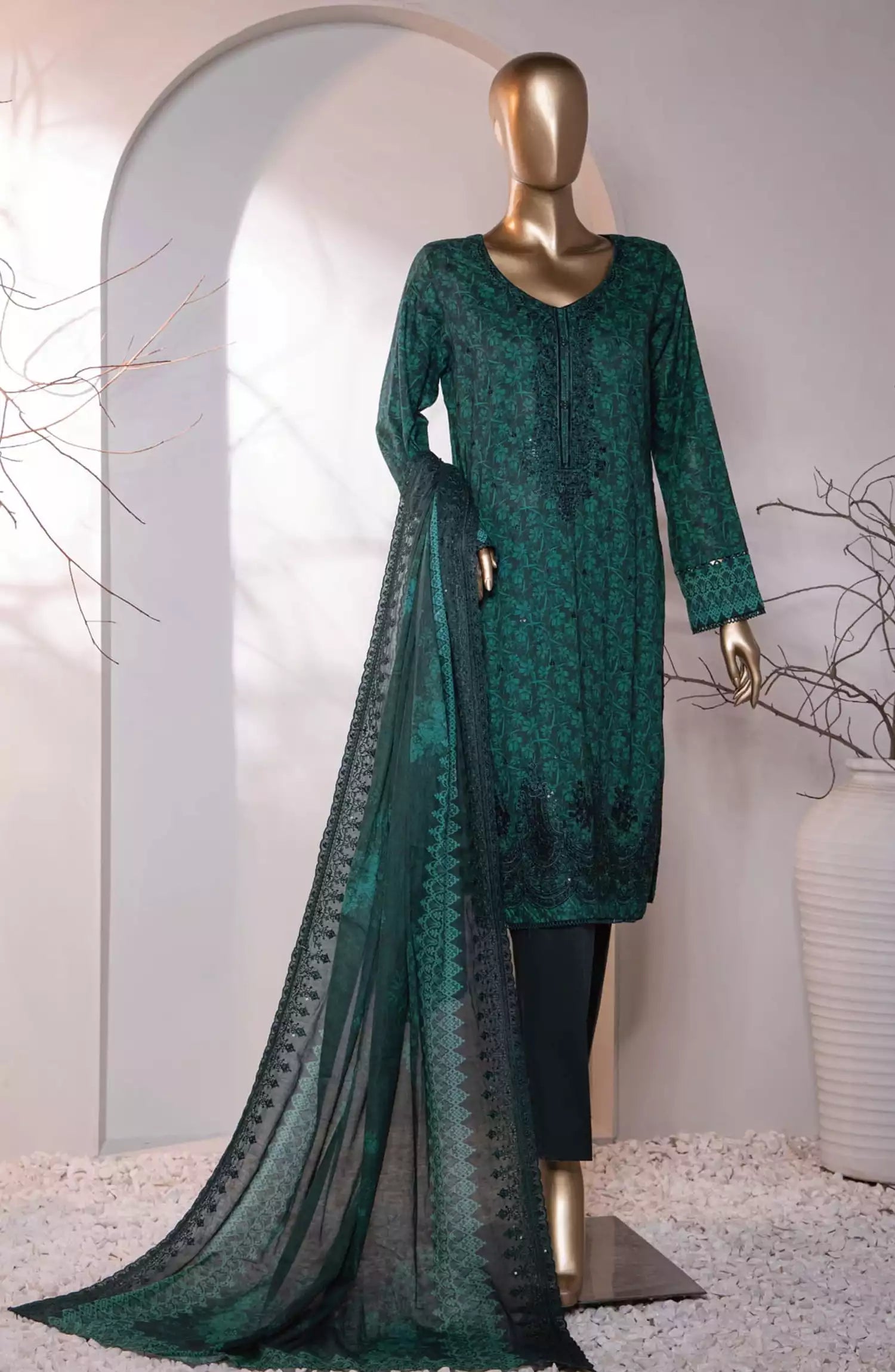 Rua by Casual Lite Embroidered Premium Linen Stitched 3 Piece Suit - D-04 Emerald Verse - CL25RU - Green - Winter Collection
