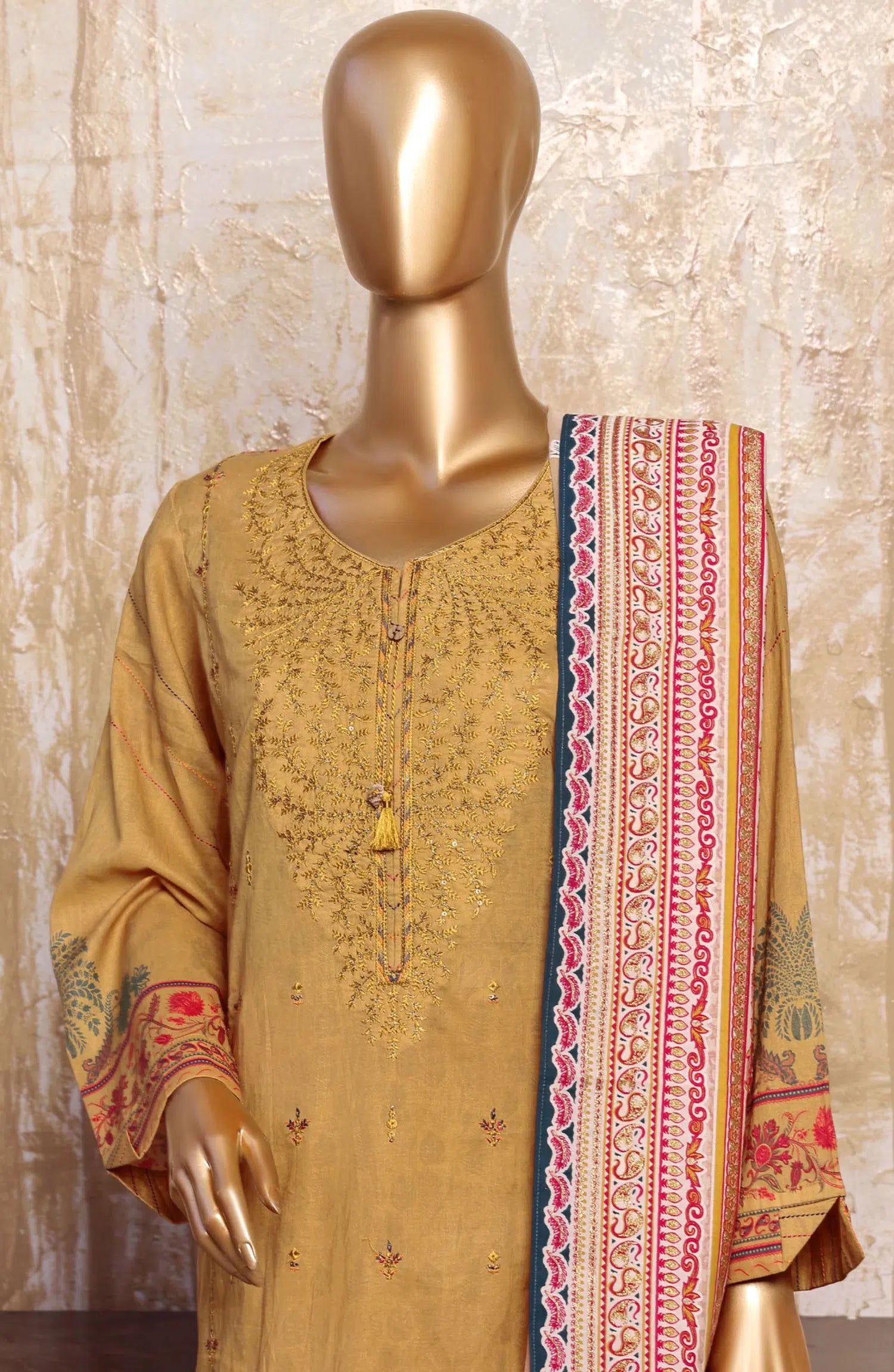 HZ Textile Digital Printed Linen Slub Unstitched 3 Piece Suit - LSD-309 - HZ25LNSL - Mustard - Winter Collection