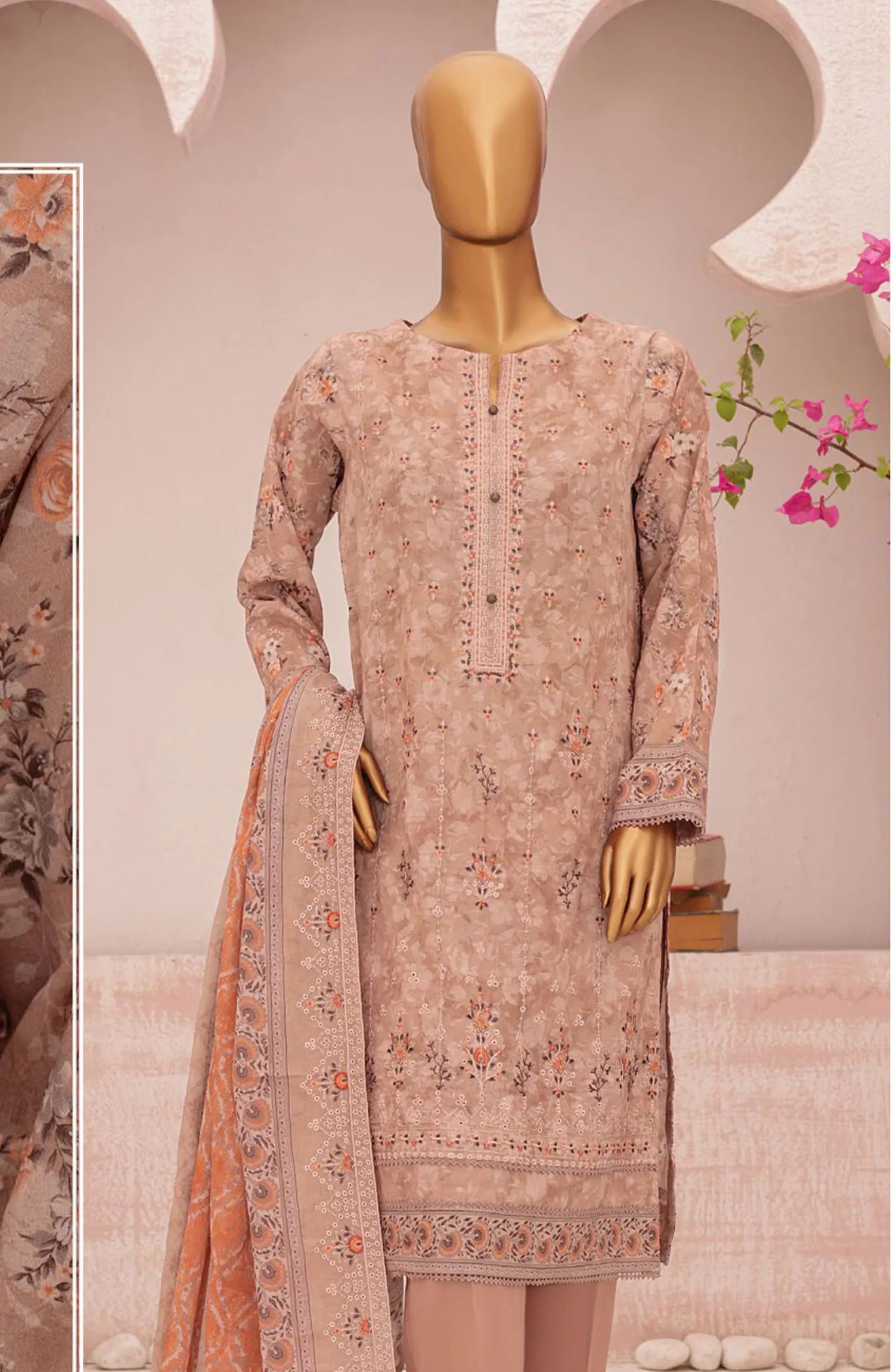 HZ Textile Digital Printed Linen Slub Unstitched 3 Piece Suit - LSD-305 - HZ25LNSL - Pink - Winter Collection