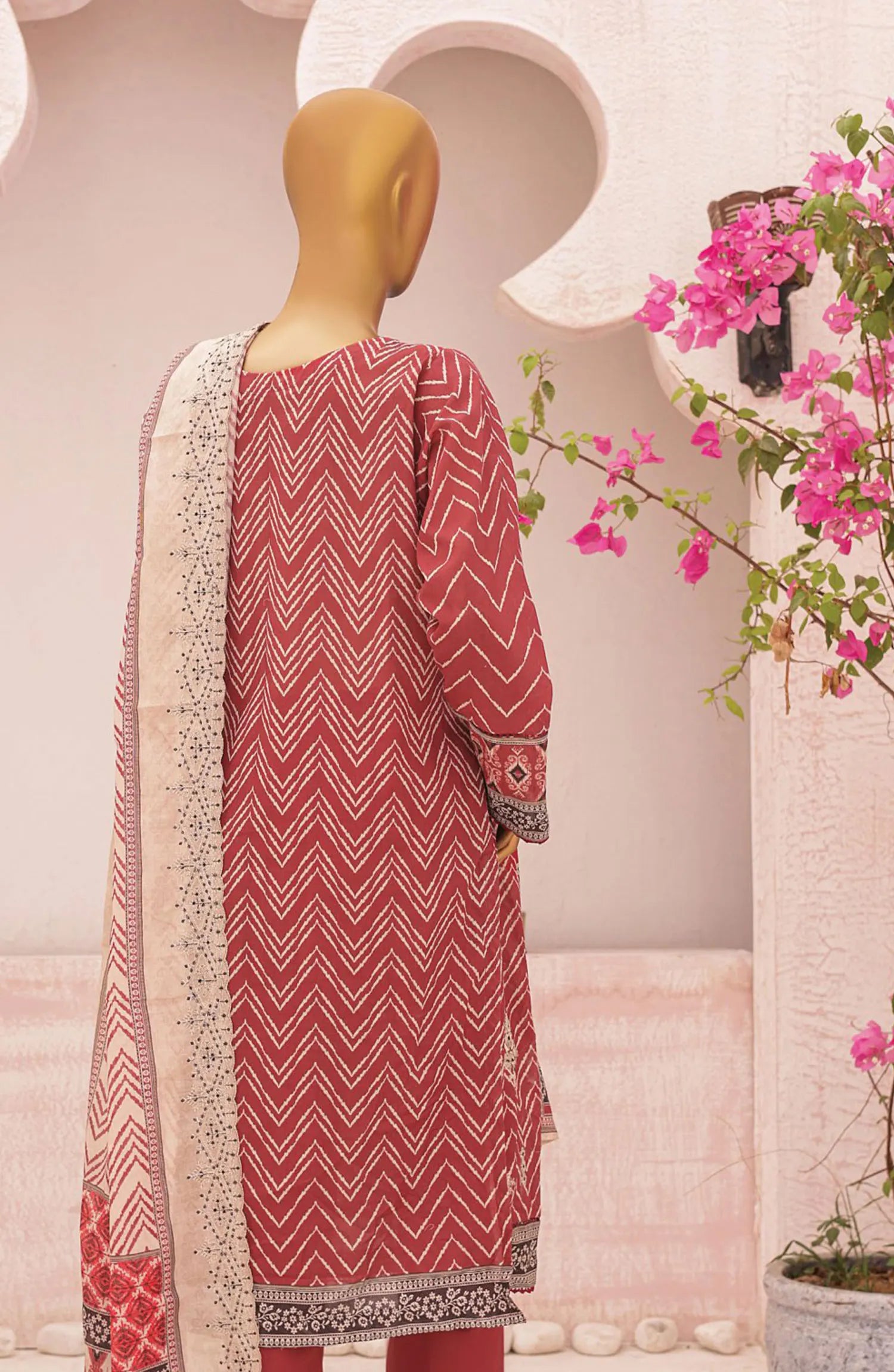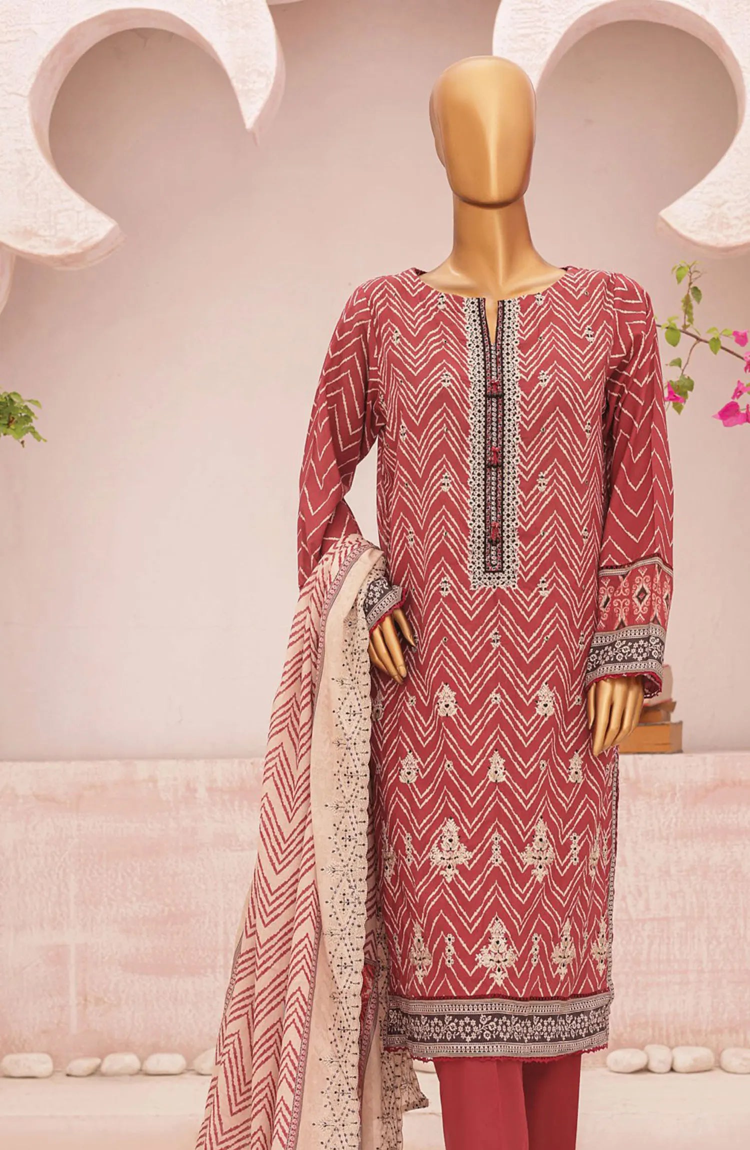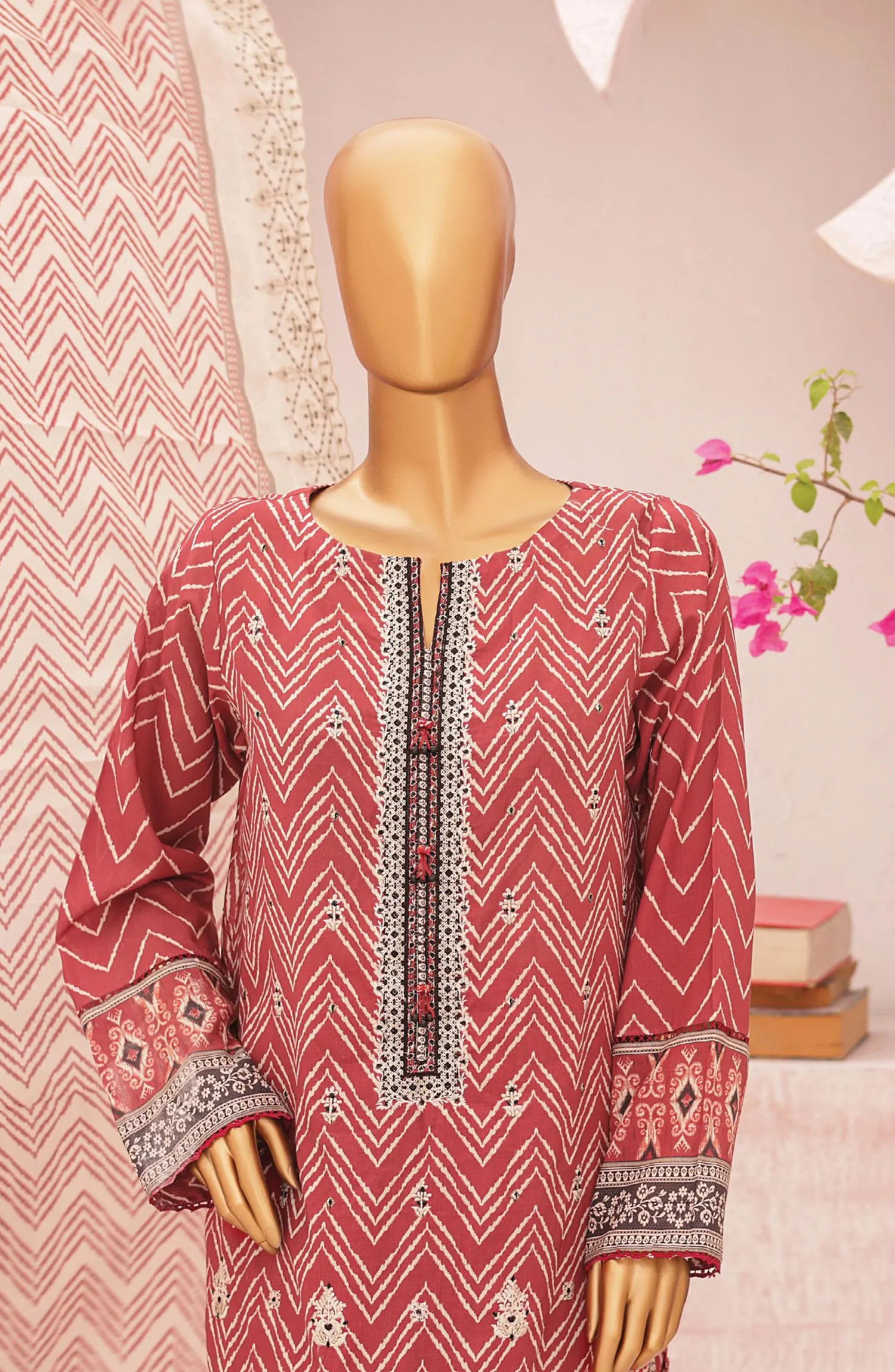 HZ Textile Digital Printed Linen Slub Unstitched 3 Piece Suit - LSD-307 - HZ25LNSL - Red - Winter Collection