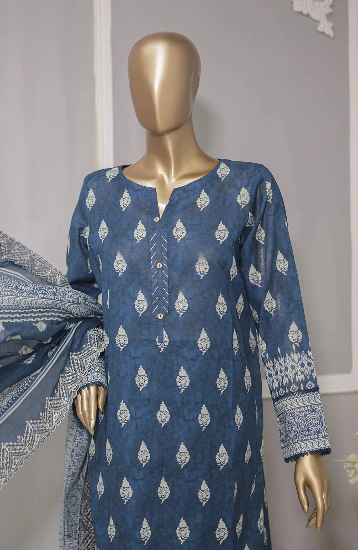 HZ Textile Digital Printed Linen Slub Unstitched 3 Piece Suit - LSD-308 - HZ25LNSL - Blue - Winter Collection