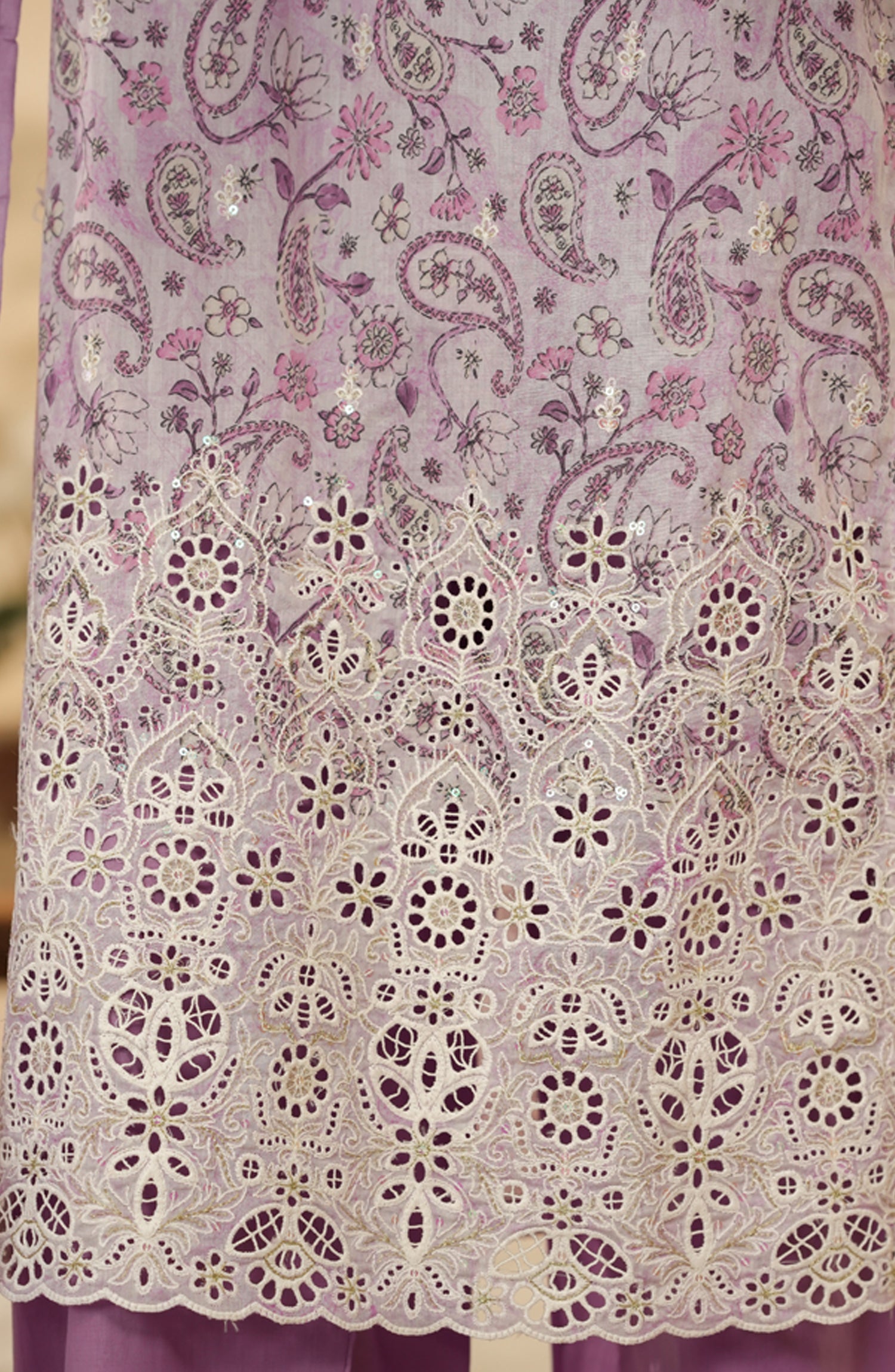 Home HZ Printkari Embroidered Chikankari Cambric Stitched 3 Piece Suit - LPK-3P-525 - HZ25KRI - Lavender - Casual Collection