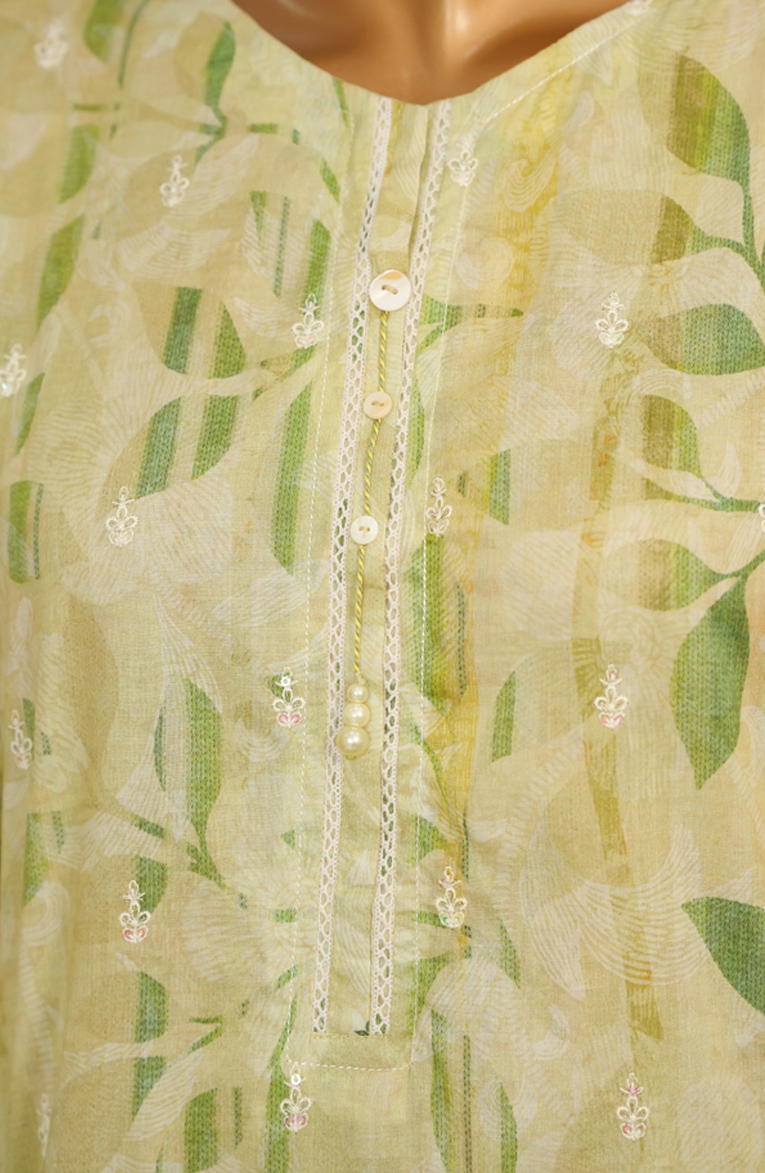 Home HZ Printkari Embroidered Chikankari Cambric Stitched 3 Piece Suit - LPK-3P-526 - HZ25KRI - Lime - Casual Collection